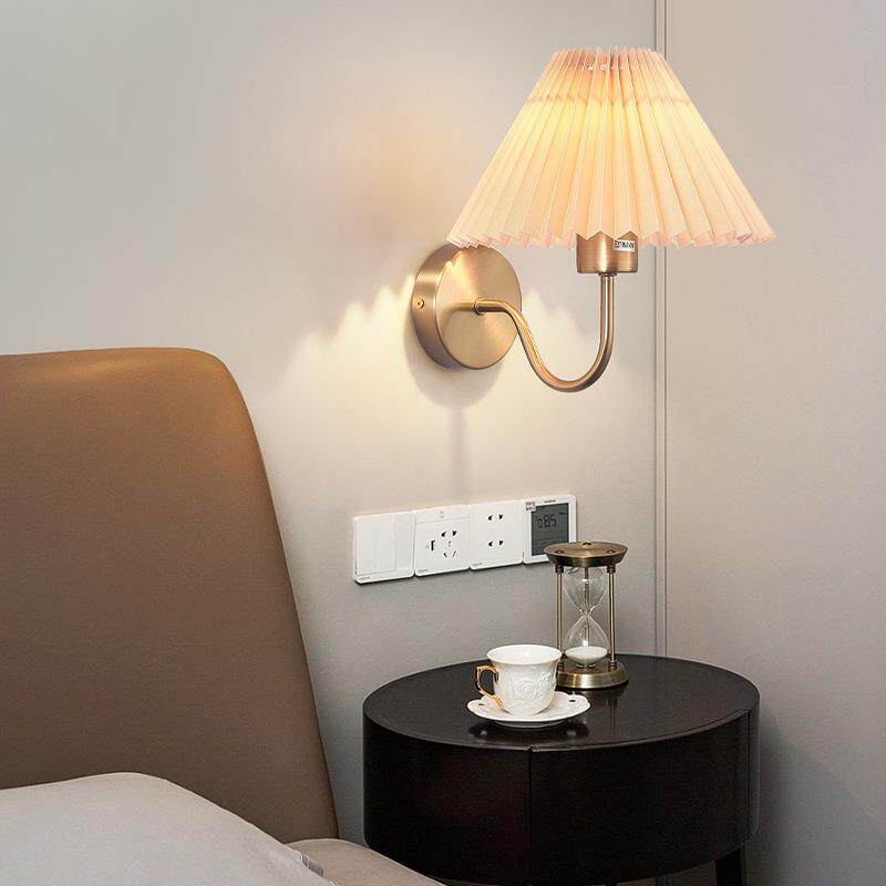 跨境百褶壁灯卧室床头灯酒店客房布艺壁灯日式风客厅过道走廊壁灯