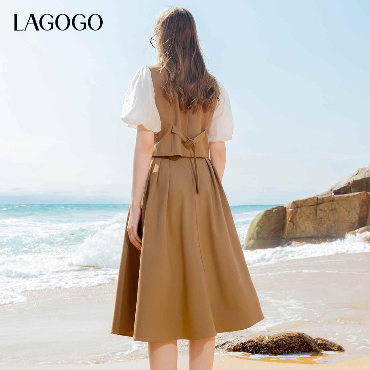 LAGOGO英伦复古风衬衫半身裙女拉谷谷夏季新款法式修身显瘦套装