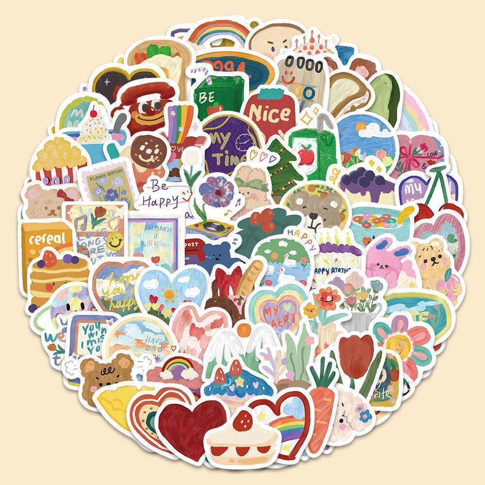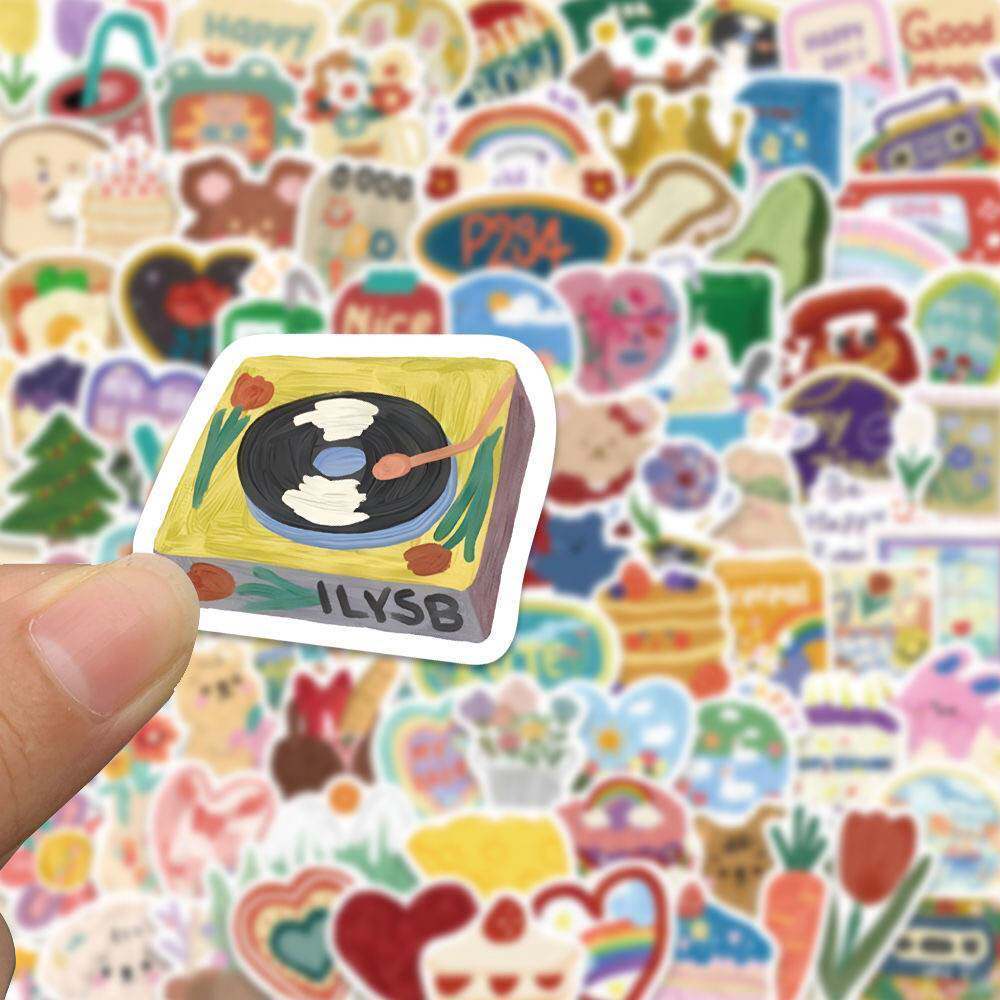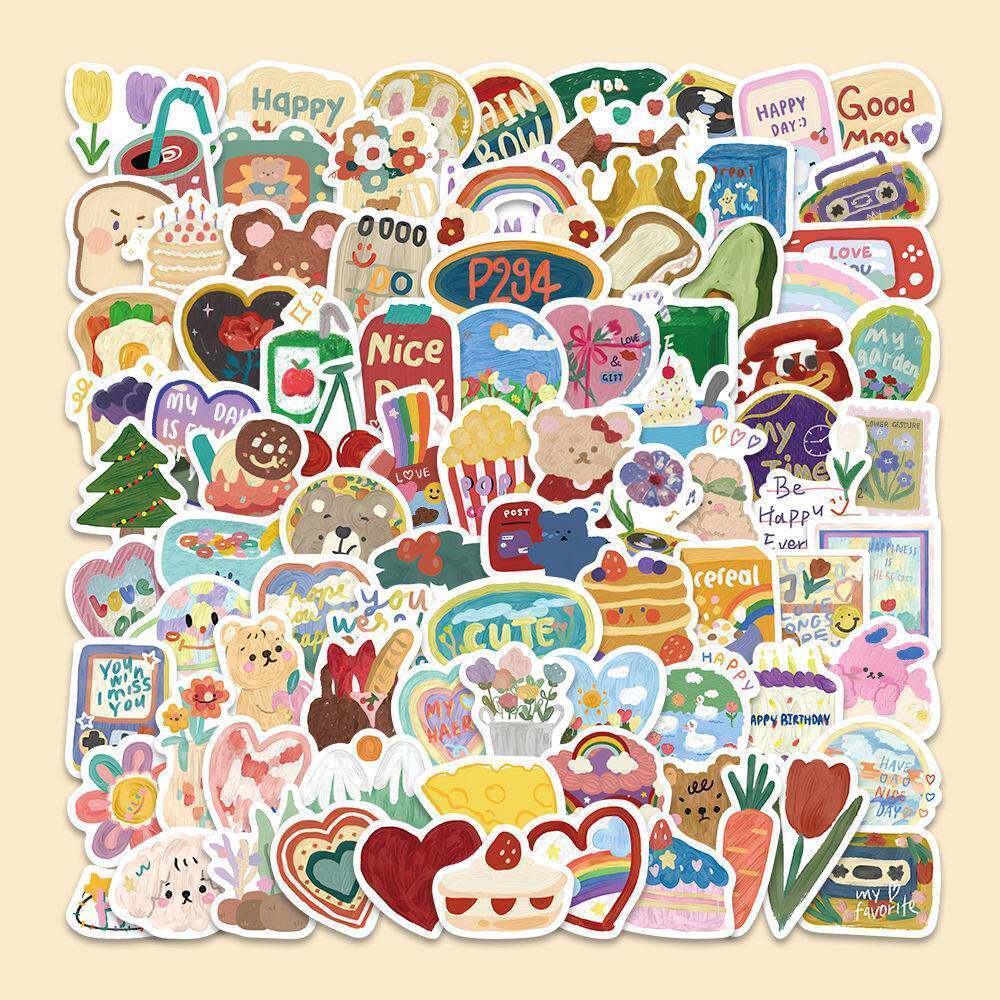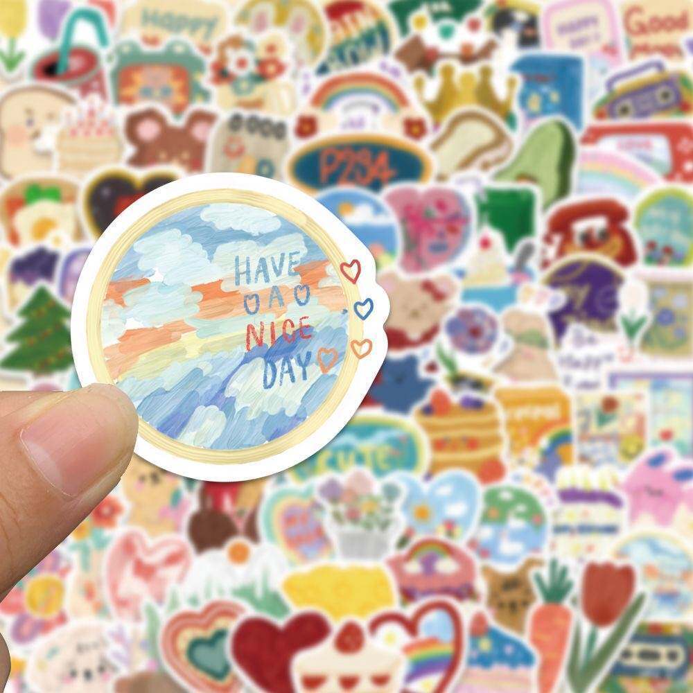 180张ins风水彩画贴纸韩系可爱DIY手账行李箱头盔笔记本手机装饰