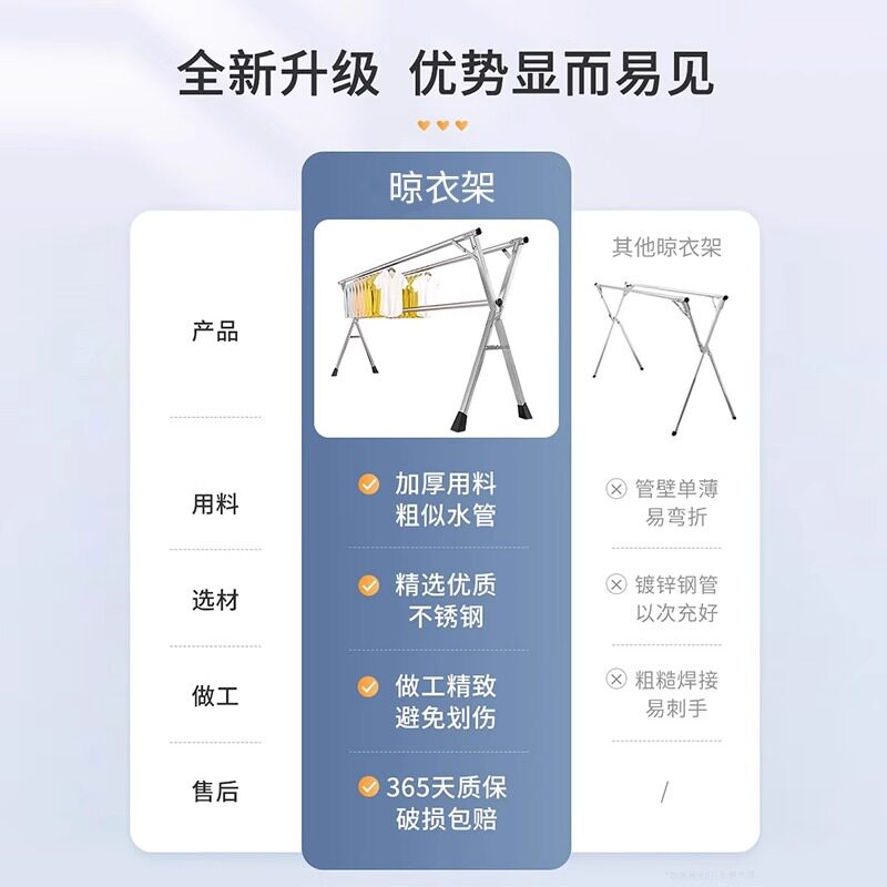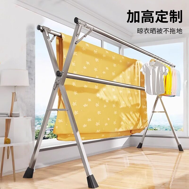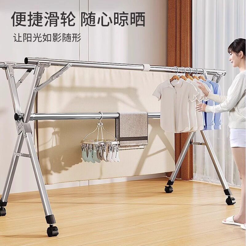 不锈钢晾衣架落地折叠室内家用阳台卧室伸缩凉衣杆晒被子神器挂衣