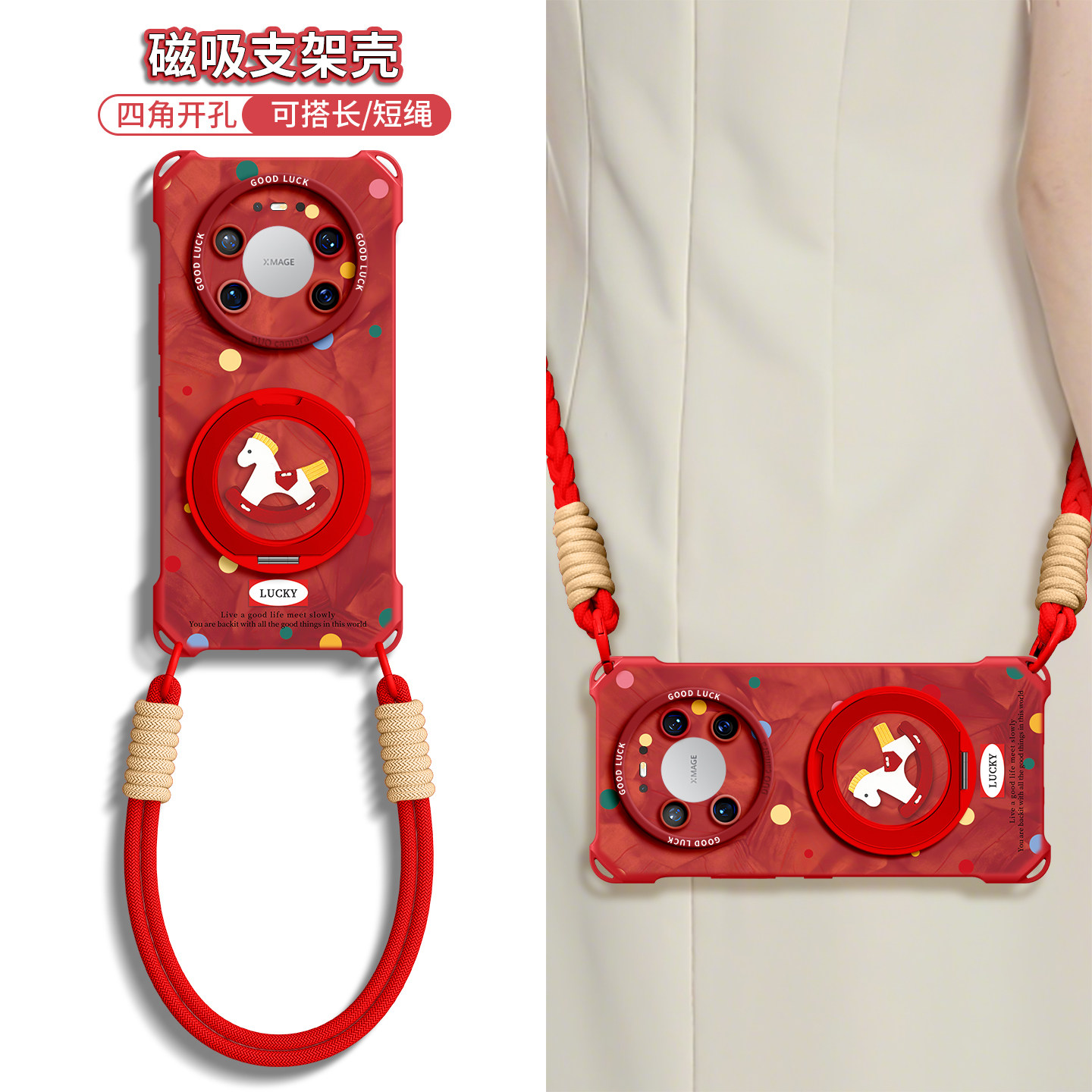 适用华为mate80手机壳新款80pro保护套80promax带挂绳70pro背带70air磁吸支架60p新年huawei马年2026本命年红