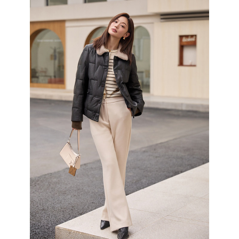唐狮DESSO秋冬新款糯米裤高腰垂感宽松加绒直筒阔腿裤5