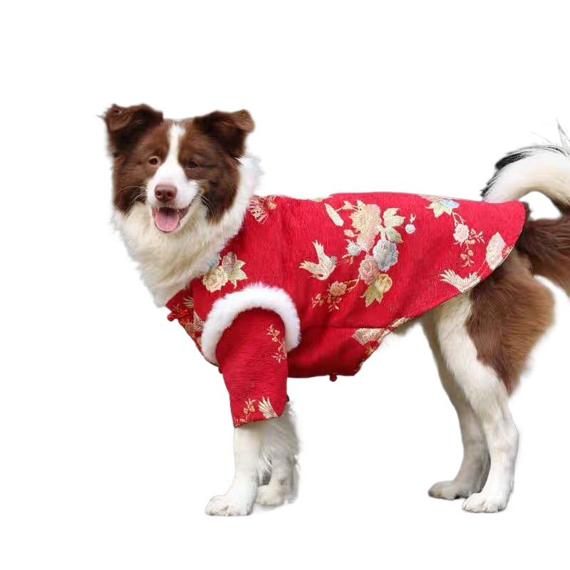 喜庆拜年唐装中大型犬金毛边牧护肘保暖棉衣小型犬过年衣服A336