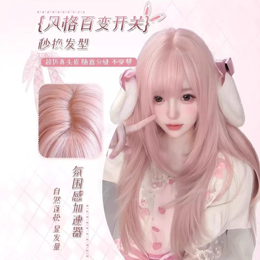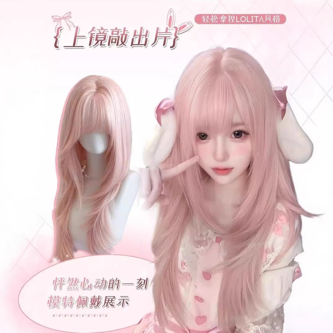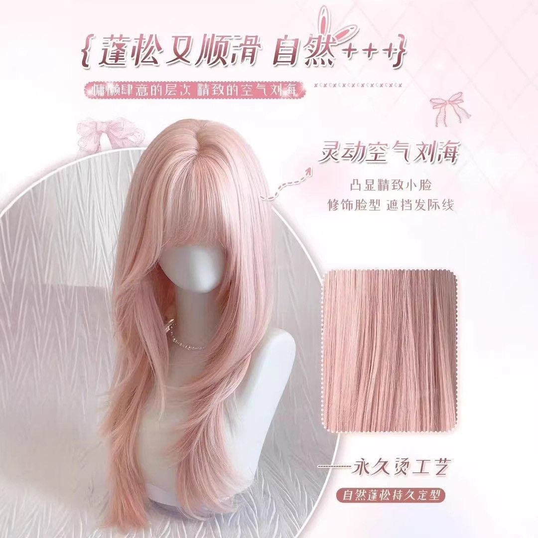 【草莓甜心】粉色假发女全头套超自然女长发高层次长直发蓬松氛围