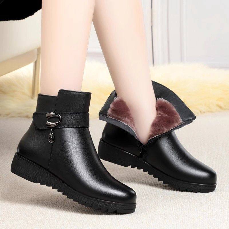 妈妈棉鞋女冬季真皮软底加绒保暖老人皮鞋羊毛防滑奶奶中老年短靴