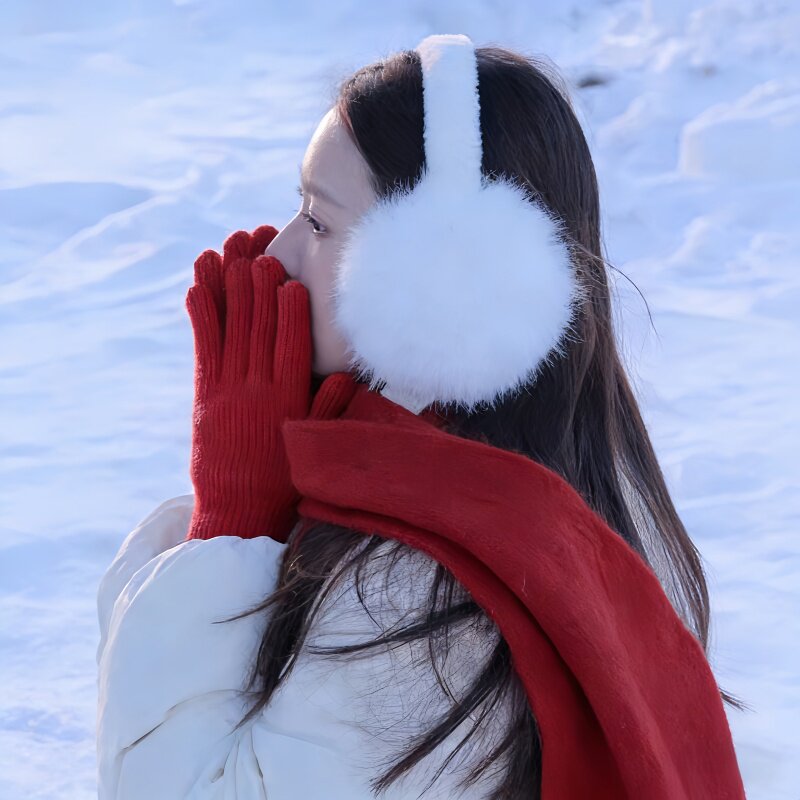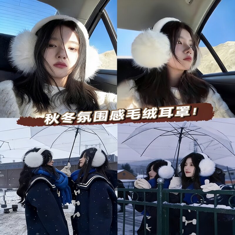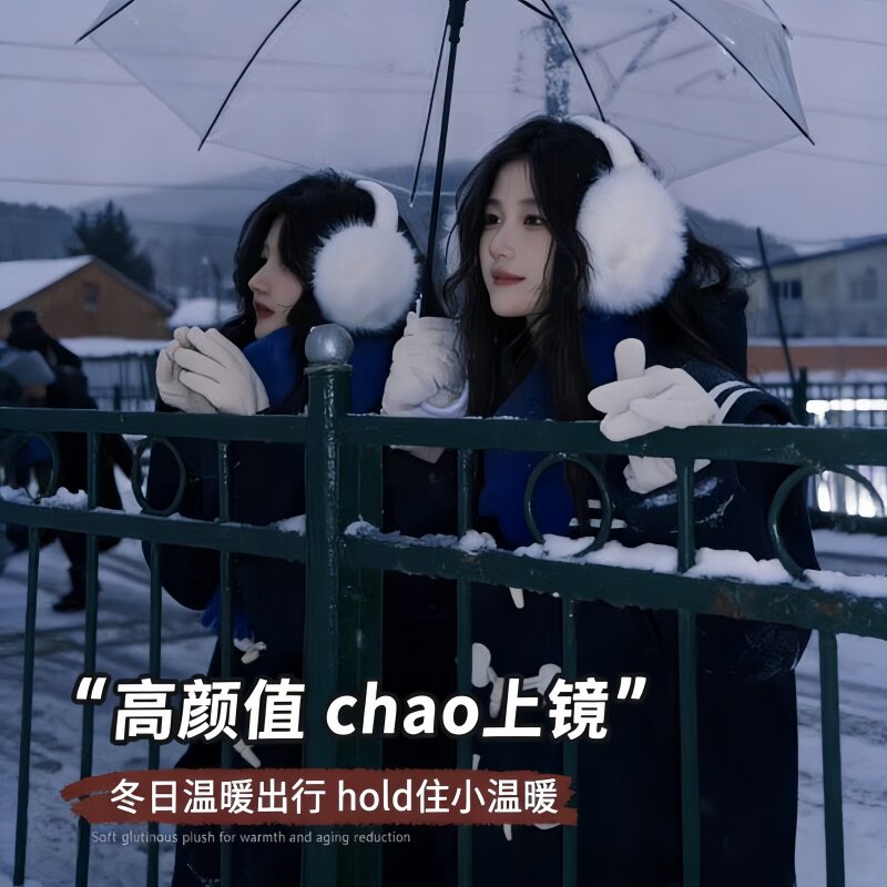 白色毛绒耳罩耳包女冬季防寒保暖耳捂子学生骑行大号毛茸茸耳套潮