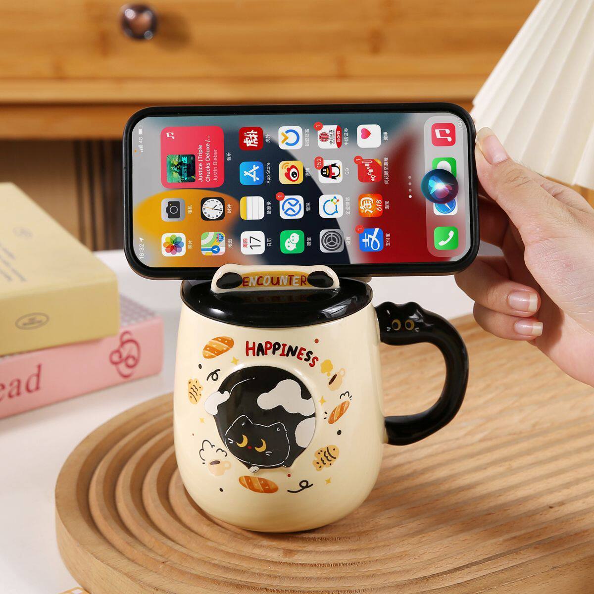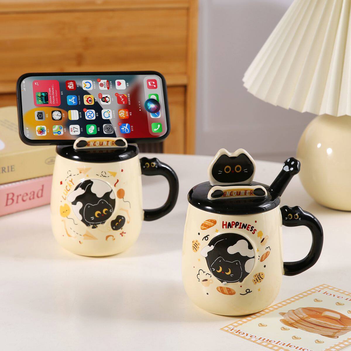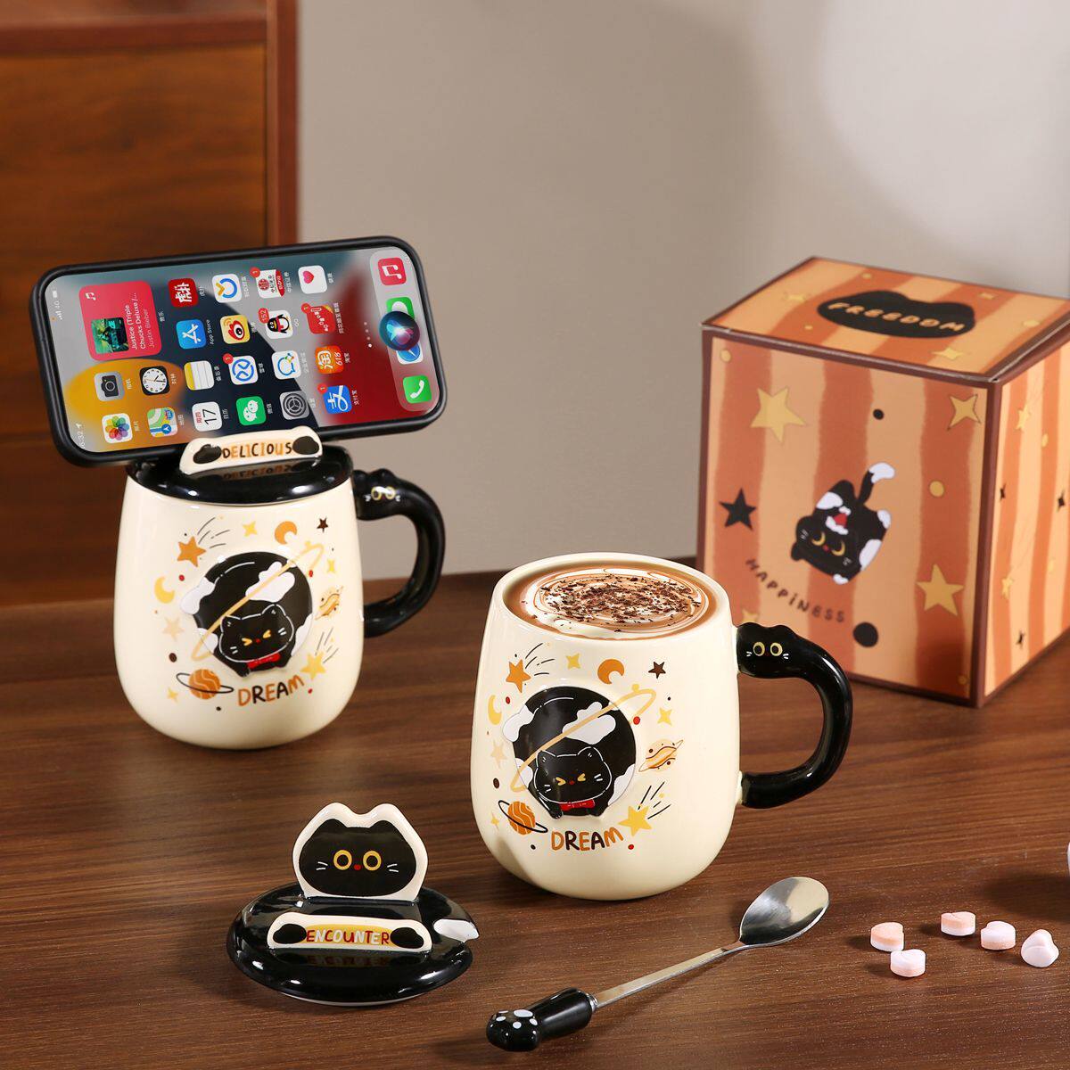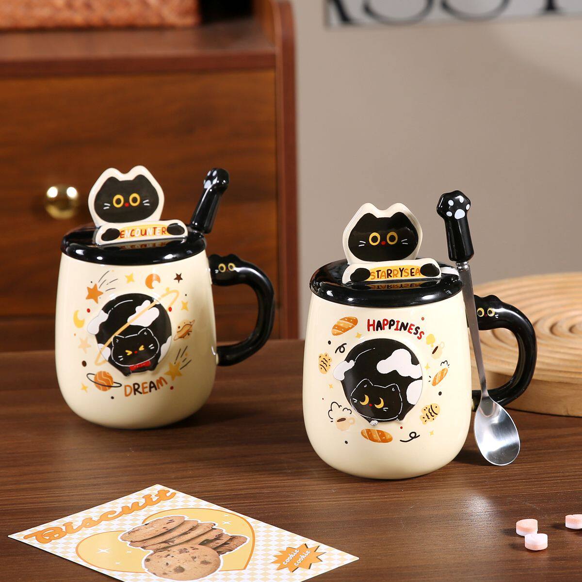 猫咪高颜值陶瓷杯可爱情侣女生办公室喝水水杯家用马克杯带盖带勺