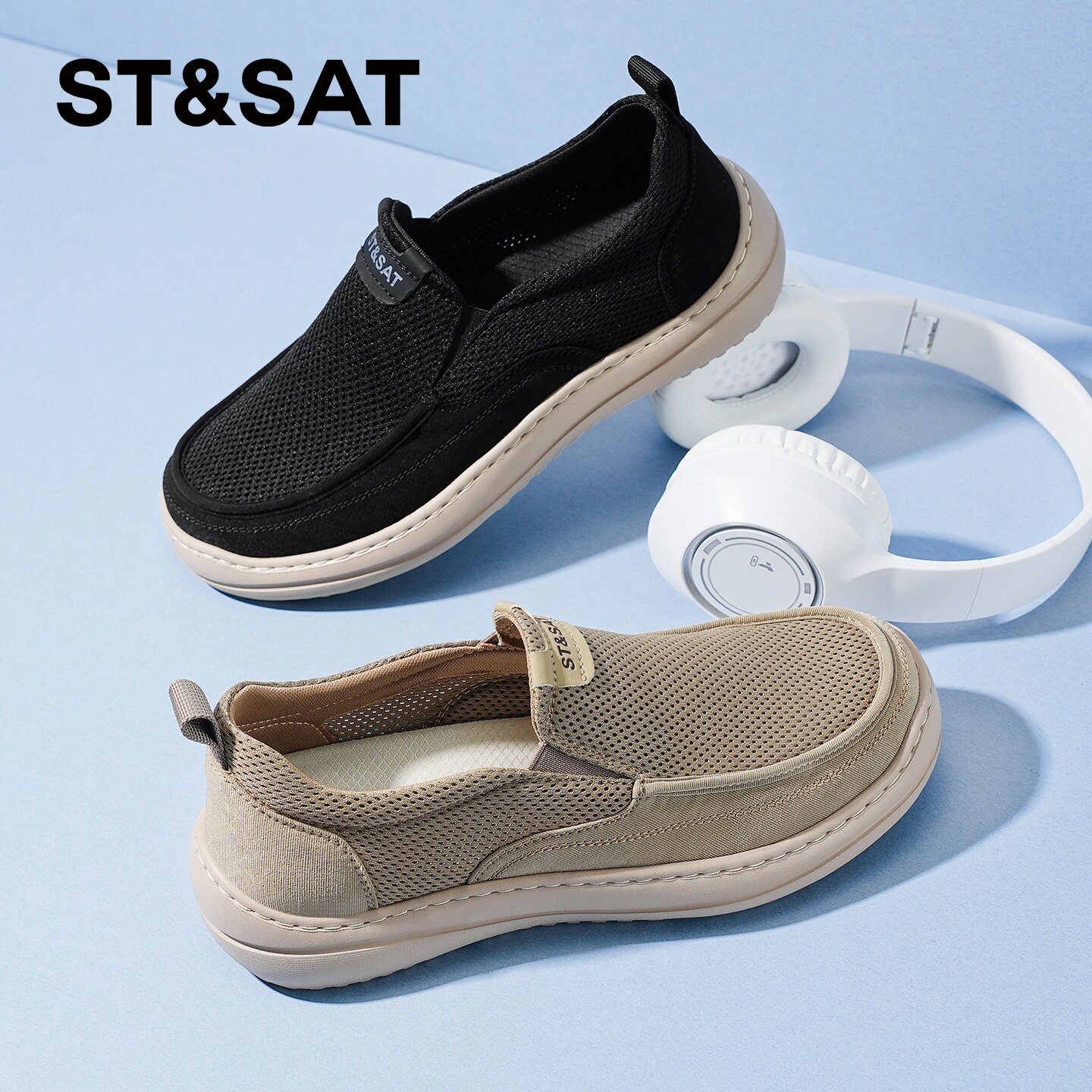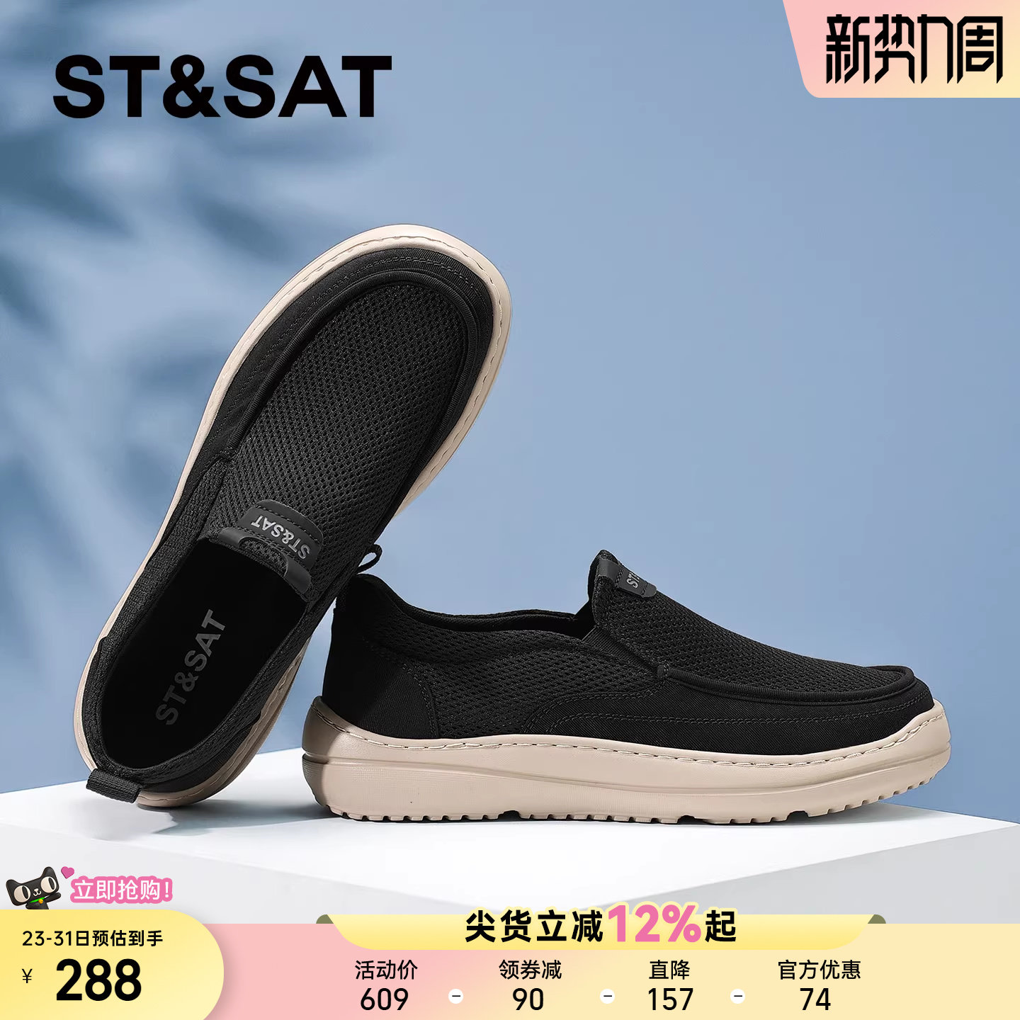 星期六男鞋夏季透气薄款网鞋2026新款轻盈舒适网面一脚蹬休闲鞋男
