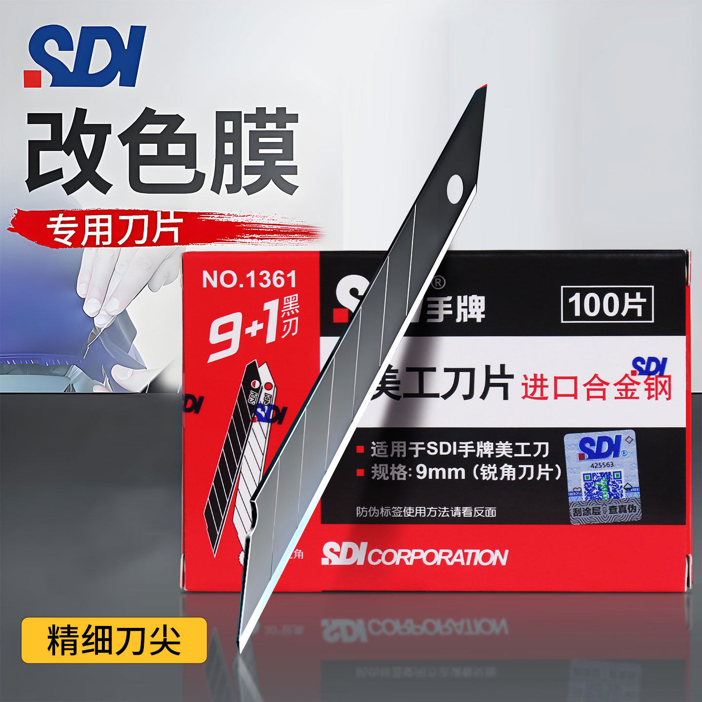 SDI手牌1361美工刀刀片尖角30度小号9mm汽车贴膜专用壁纸裁纸皮革进口合金大号18mm家居裁膜刻刀刀片批发