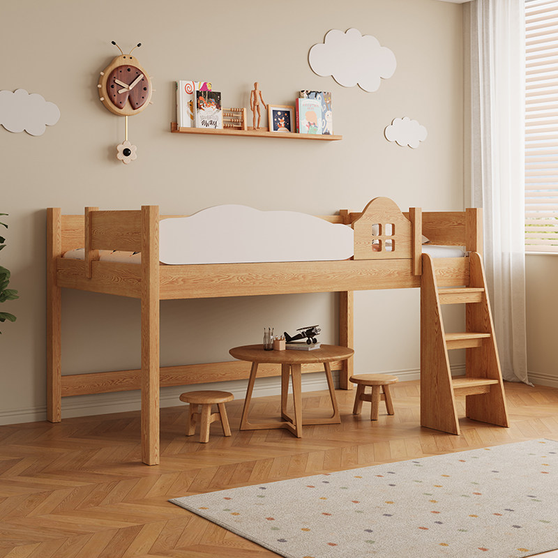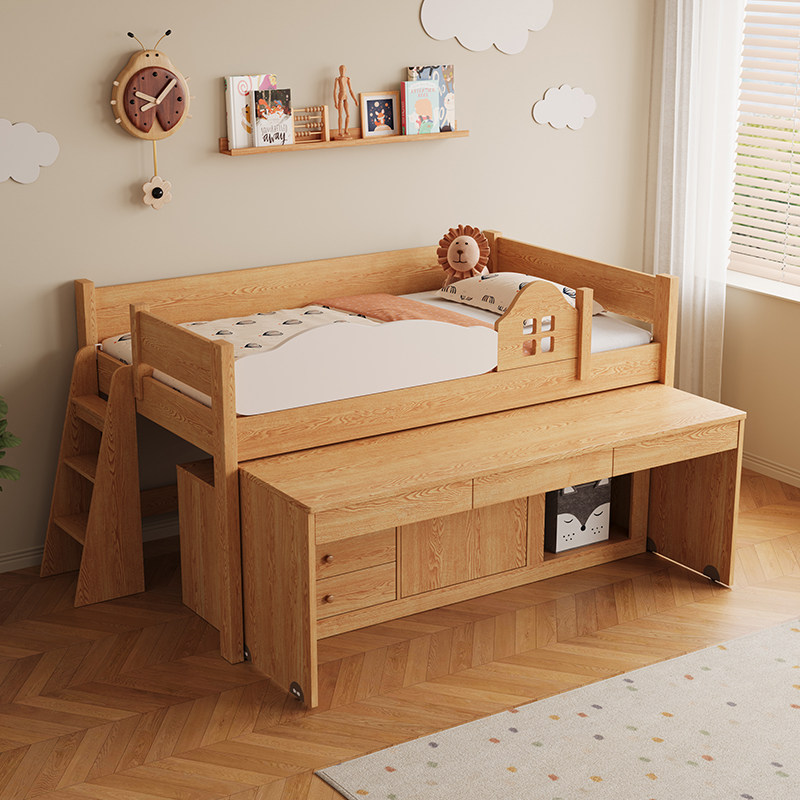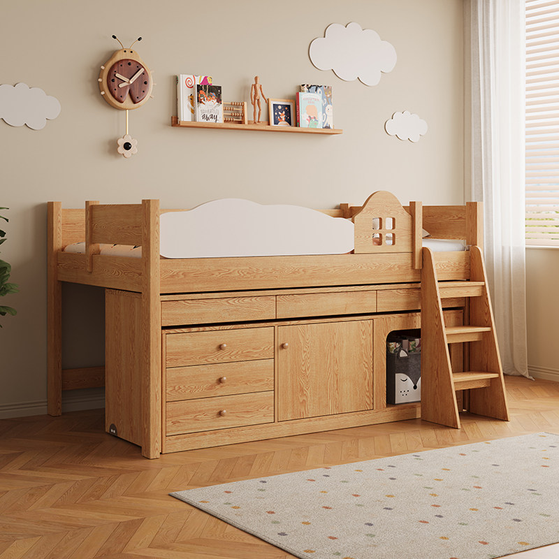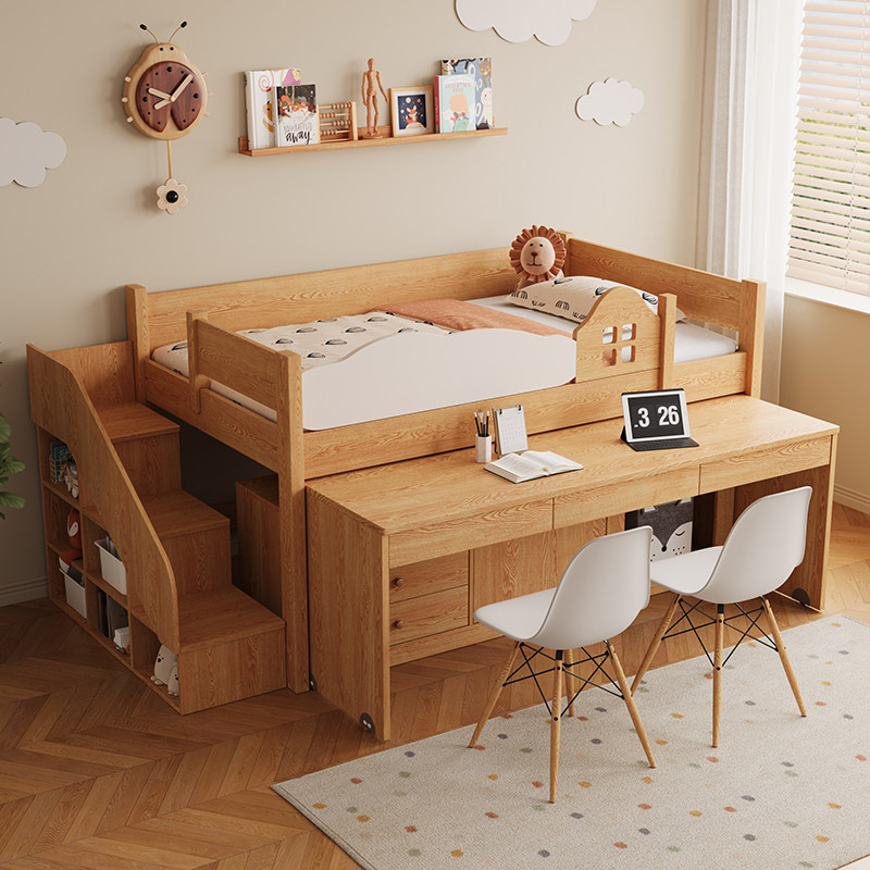 实木儿童抽拉半高床多功能移动书桌储物一体小户型男孩组合床