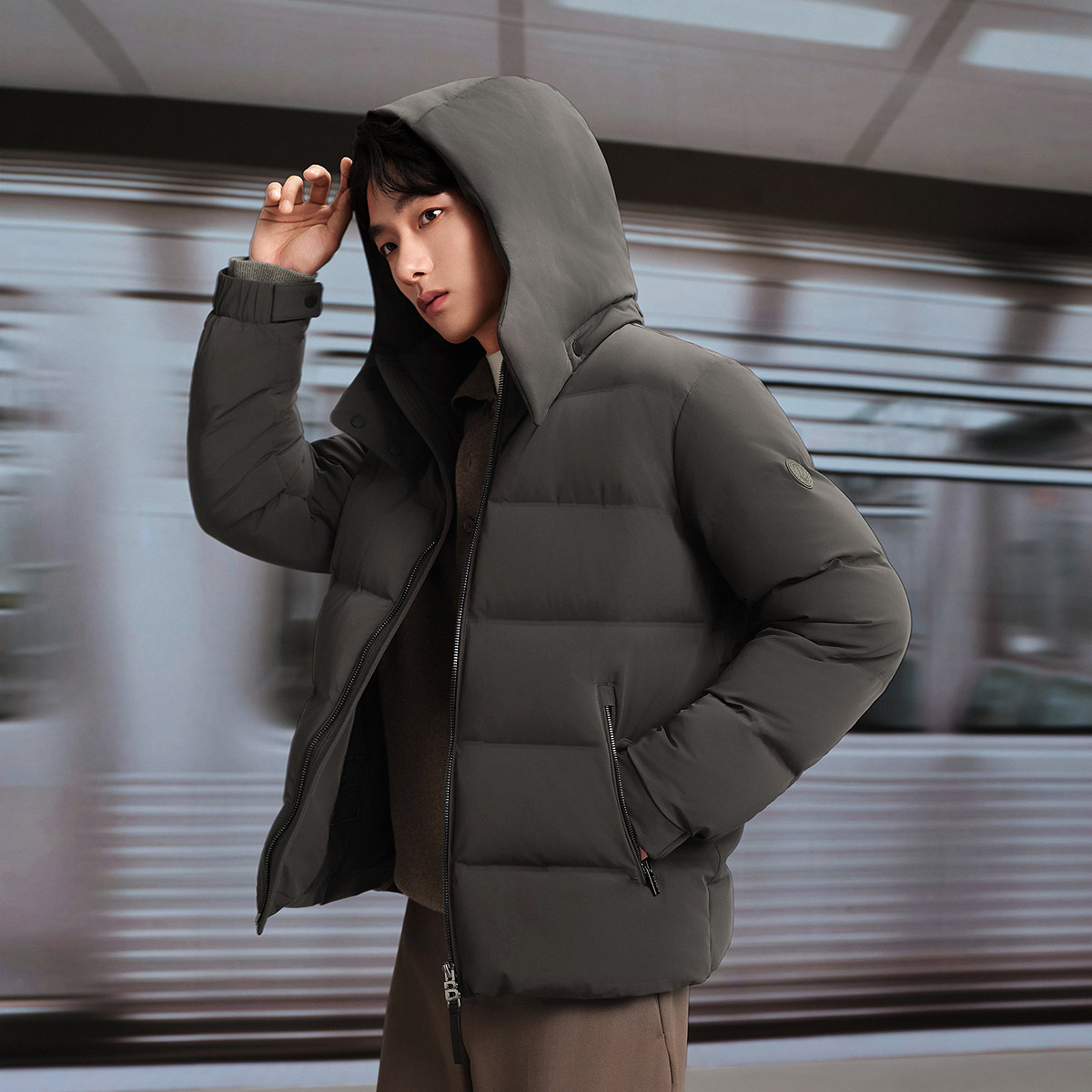 骆驼黑钻5 男装羽绒服防风拒水面包防寒服时尚连帽短款外套秋冬男