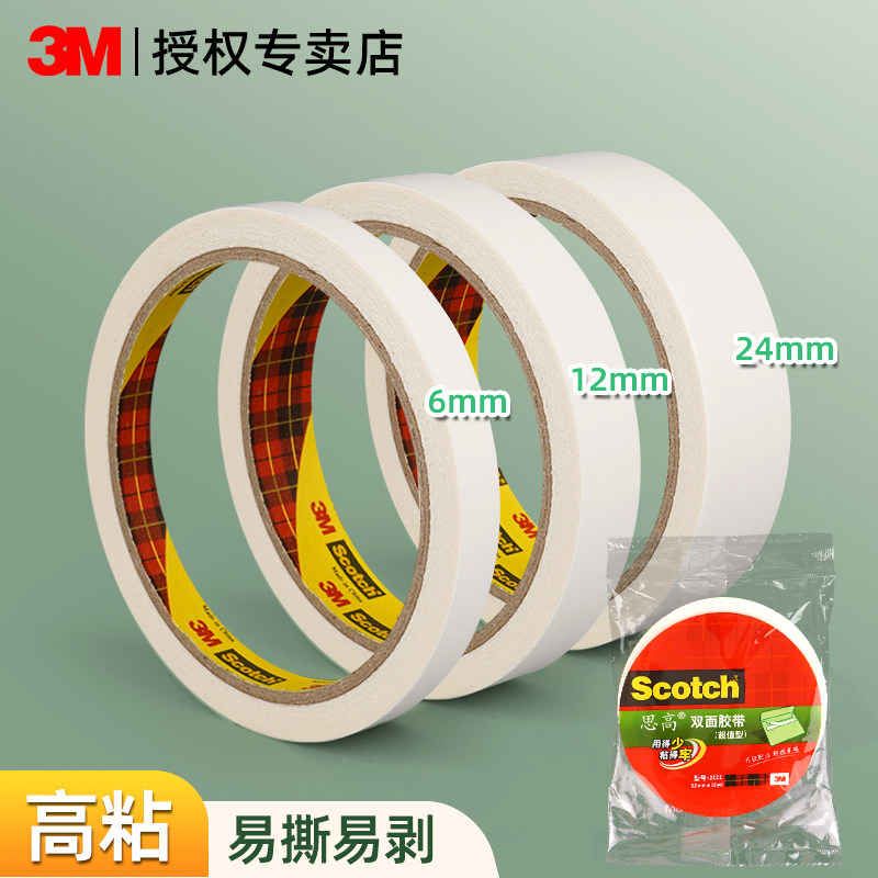 3M双面胶高粘性半透明200c胶带可手撕无痕不易残胶家用学生信封手工推荐办公粘贴文件KT板纸盒专用固定双面胶