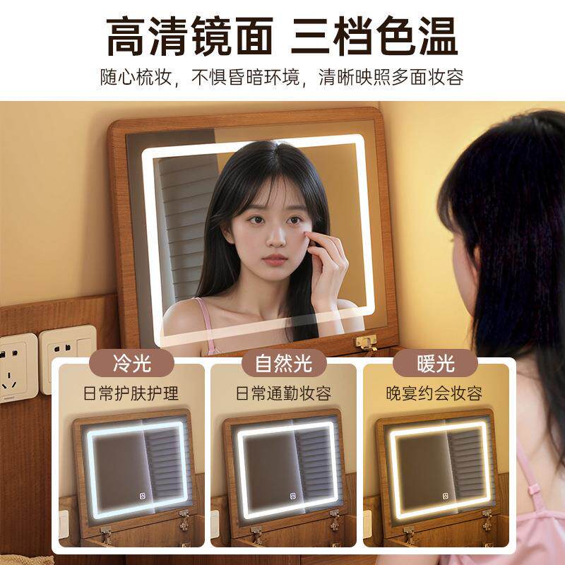 翻盖梳妆台卧室现代简约床头柜收纳柜一体小型化妆镜化妆书桌