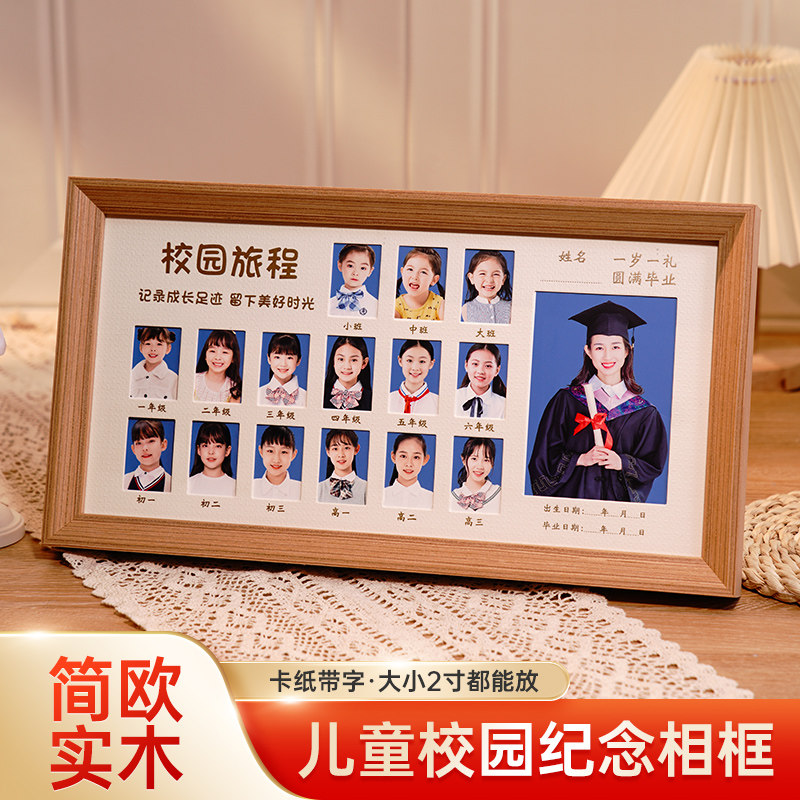 校园成长记录相框儿童证件照收纳宝宝一寸照片幼儿纪念相册宝生日