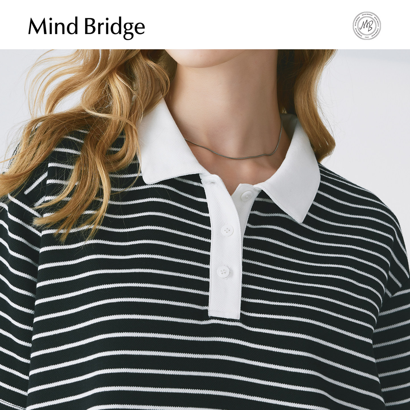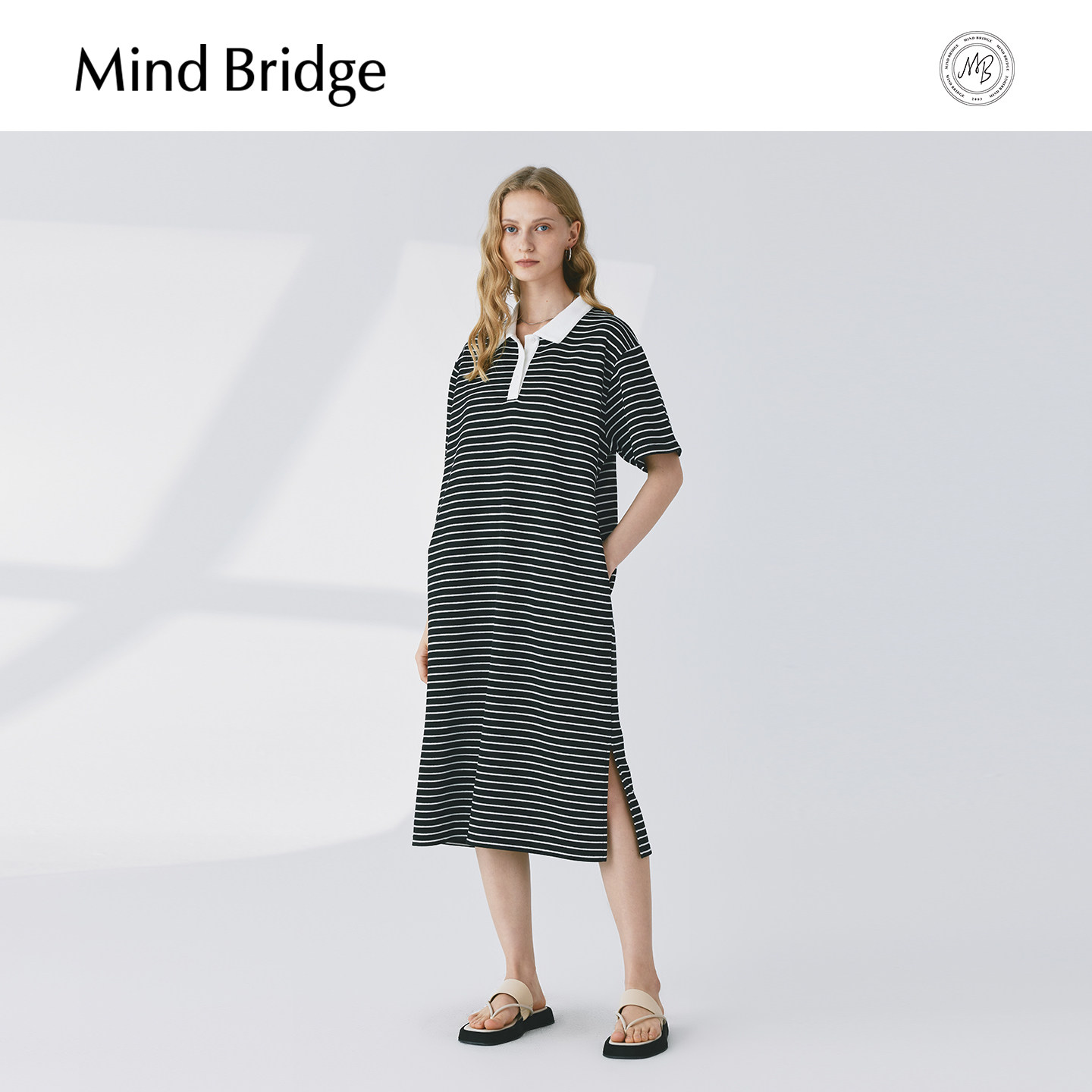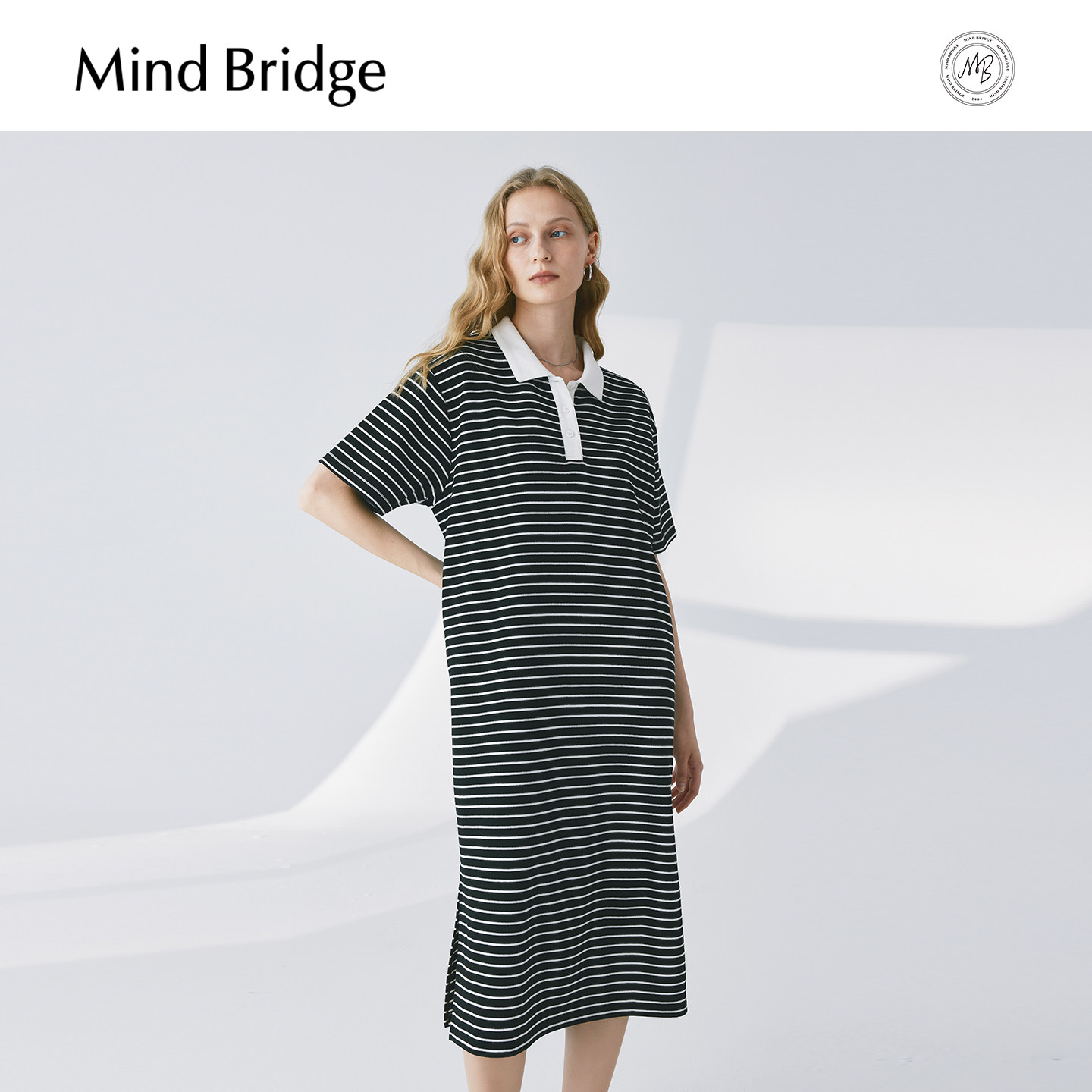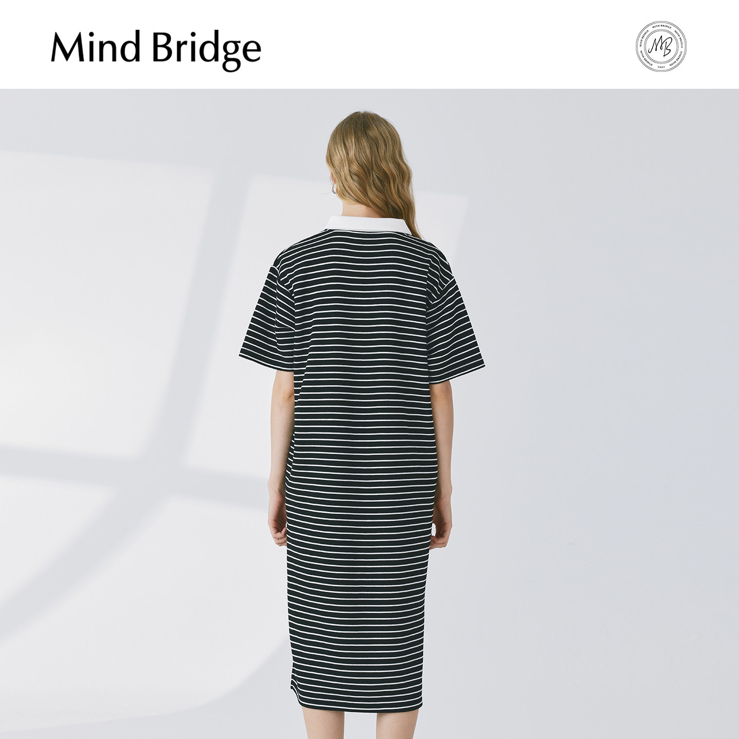 Mind Bridge夏季宽松休闲短袖连衣裙女条纹长裙设计感Polo领裙子