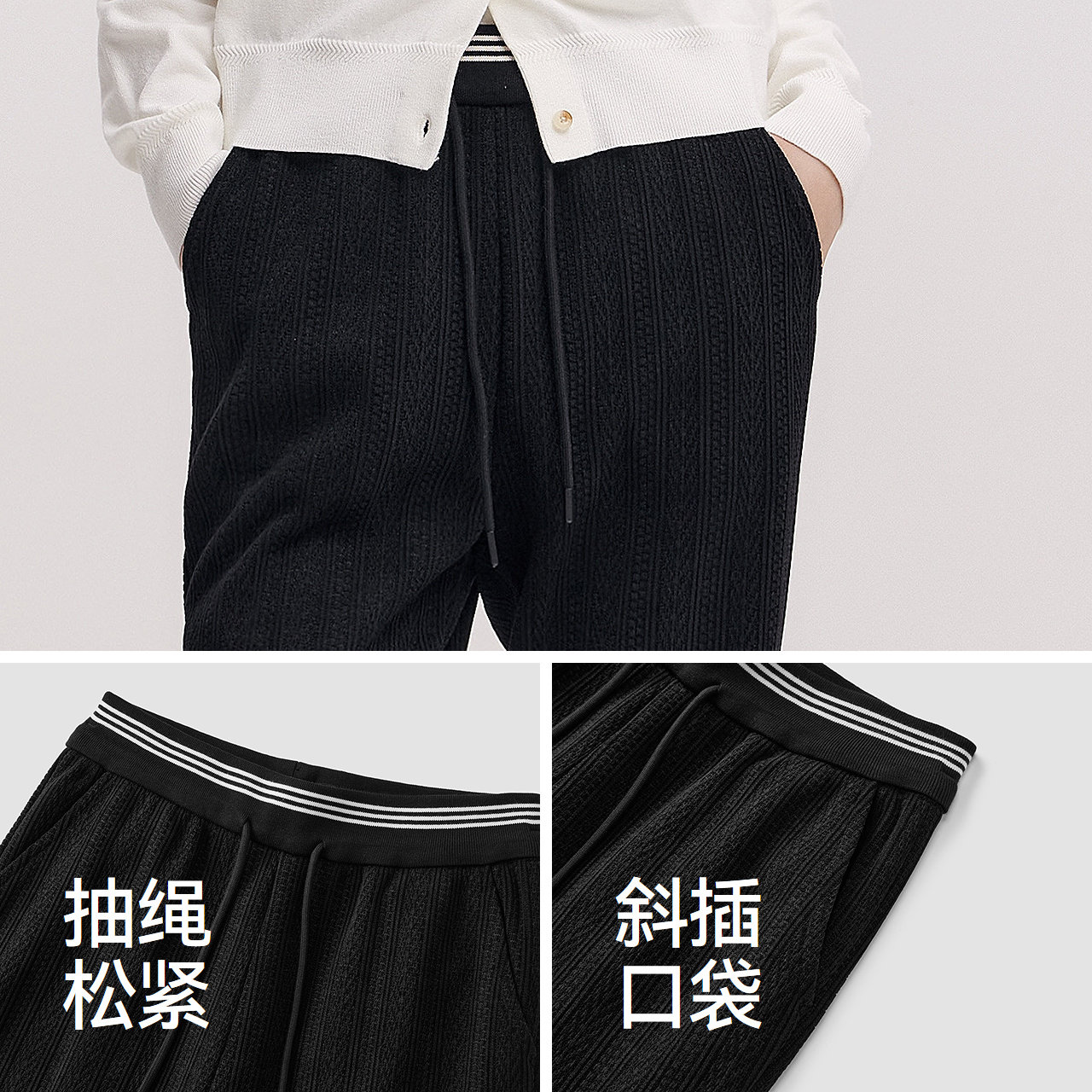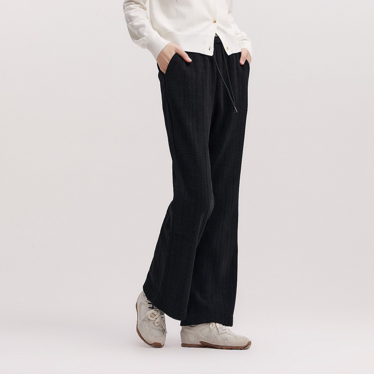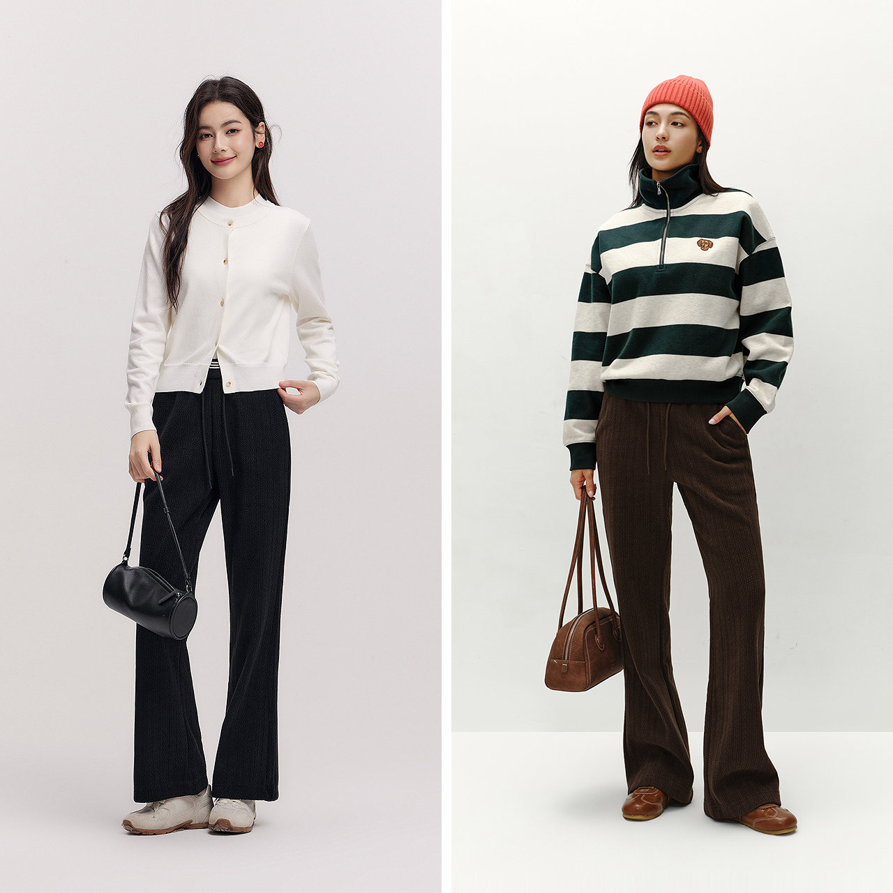 森马休闲裤女冬雪尼尔加绒撞色松紧腰喇叭裤肌理慵懒气质女士长裤