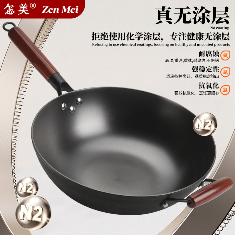 【经典款】中康精铁炒锅铁锅氮化防锈无涂层炒锅电磁炉燃气灶通用