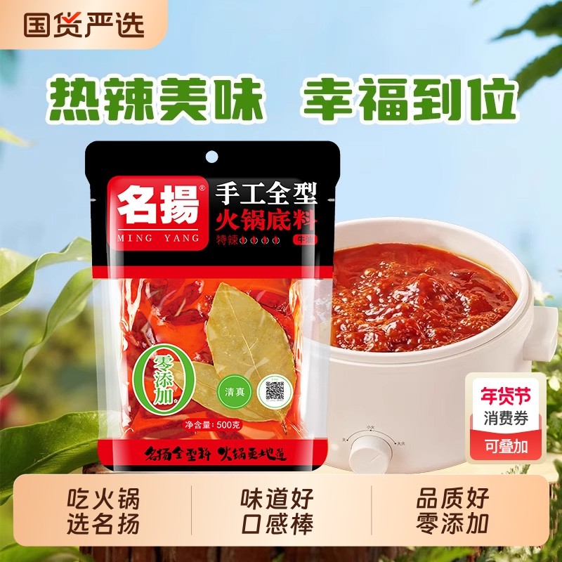 名扬火锅底料牛油特辣500g手工全型鸳鸯锅四川成都清真家用料麻辣