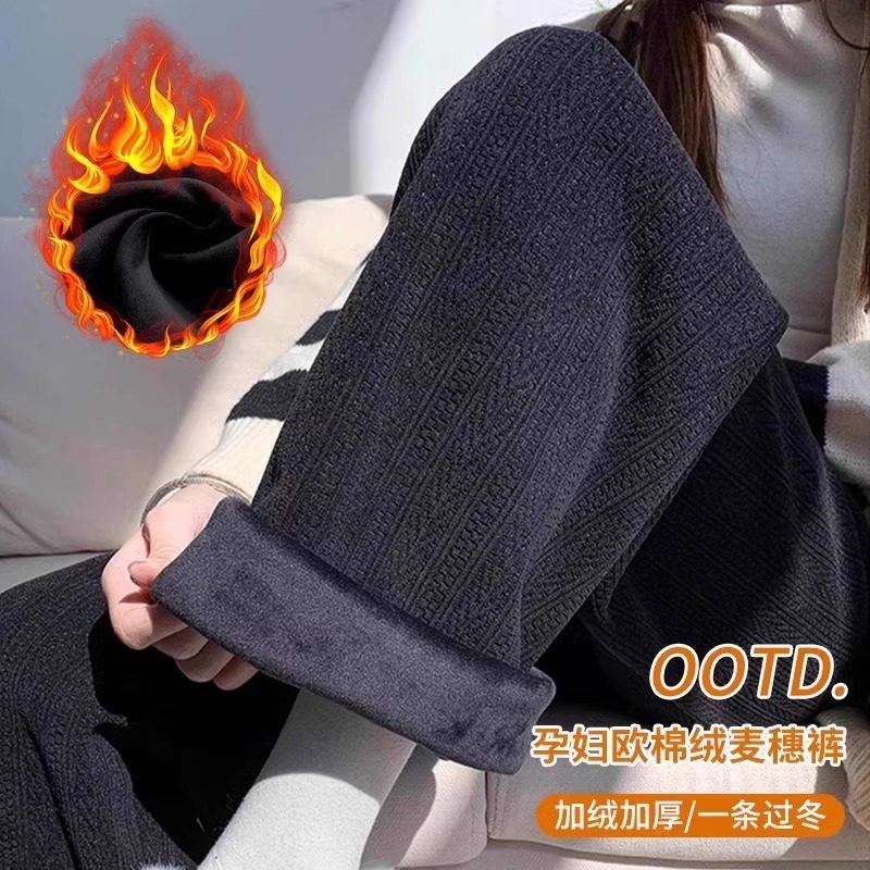 孕妇裤冬季加绒加厚2025新款羊羔绒直筒裤子时尚外穿秋冬款阔腿裤