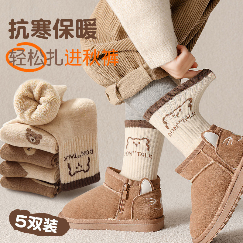 儿童袜子男童秋冬加厚毛圈保暖加绒中长筒袜大童宝宝婴儿纯色棉袜