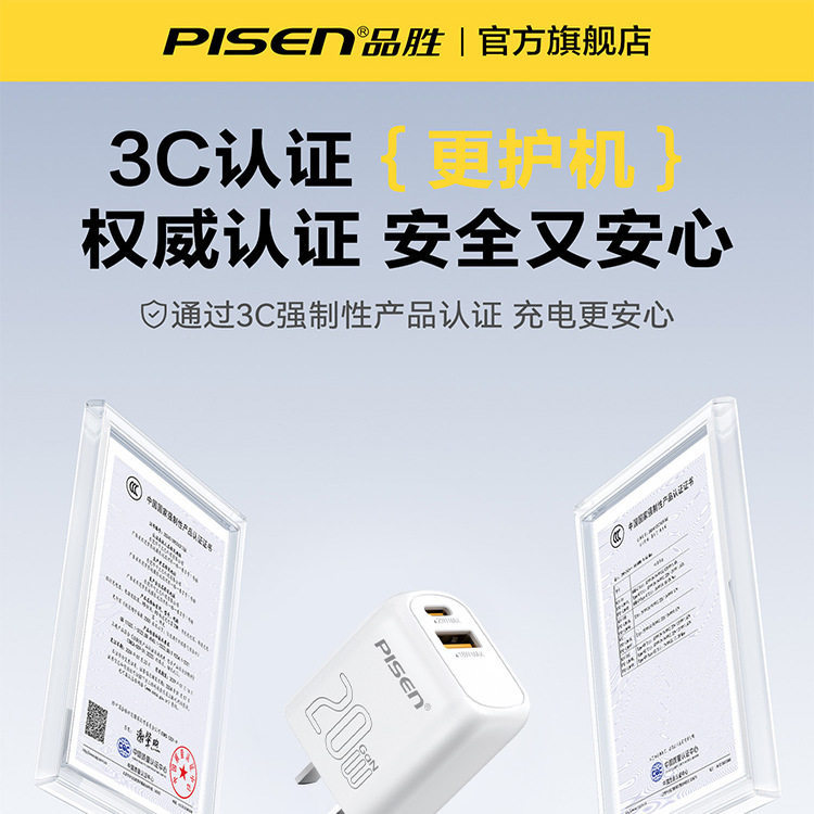 【国家3C认证】品胜20W双口充电器14充电头适用苹果15安卓16快充ipad通用5v2a快速13多口12插头typec数据线11