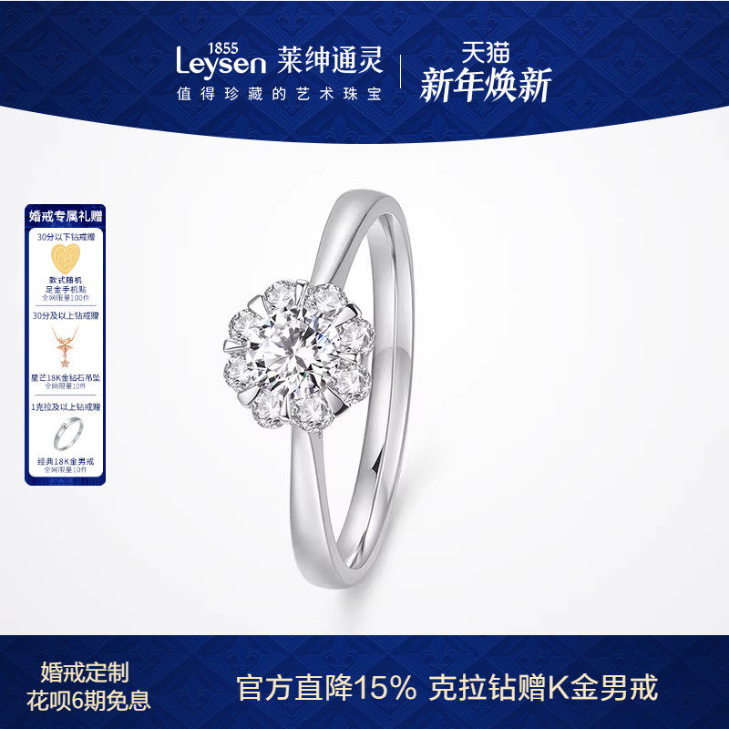 【婚戒定制】莱绅通灵 手捧花 18K金钻石戒指 群镶钻戒