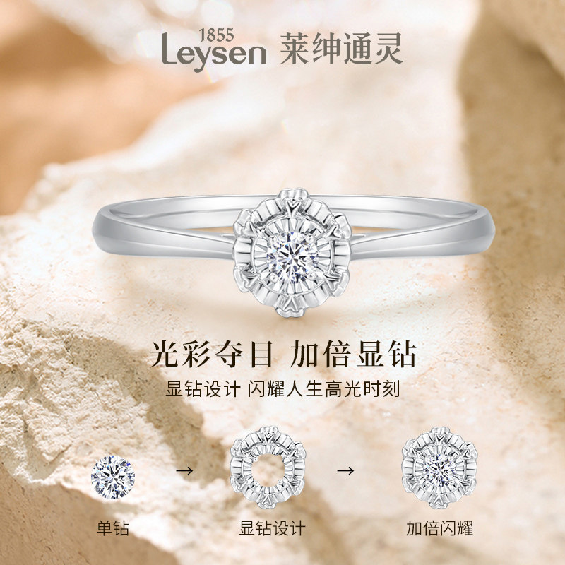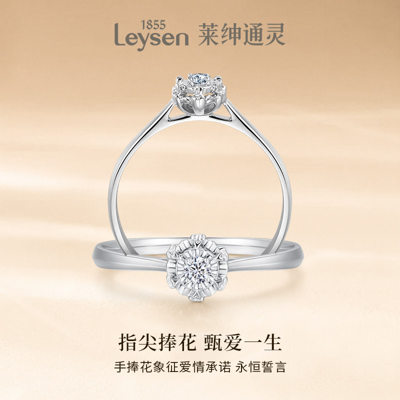 莱绅通灵 花颂 铂金钻石戒指婚戒定制 pt950钻戒女