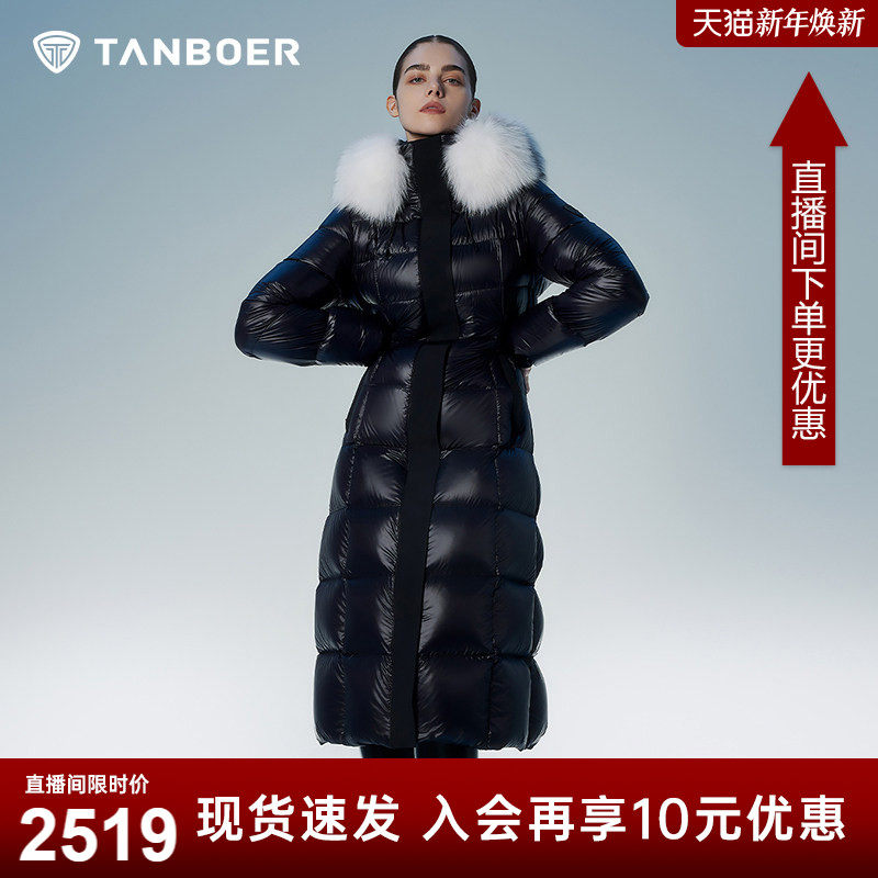 坦博尔25冬季品鹅绒毛领可脱卸帽中长款款高充绒超保暖羽绒服外套