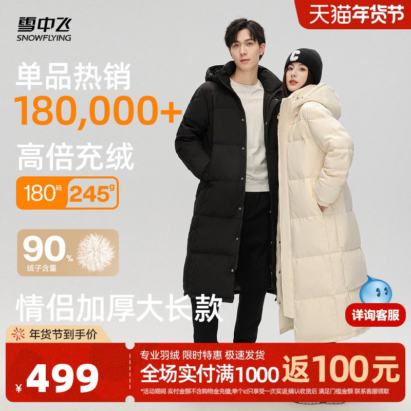 雪中飞大被子款2025秋冬男女中性情侣长款羽绒服过膝保暖加厚外套