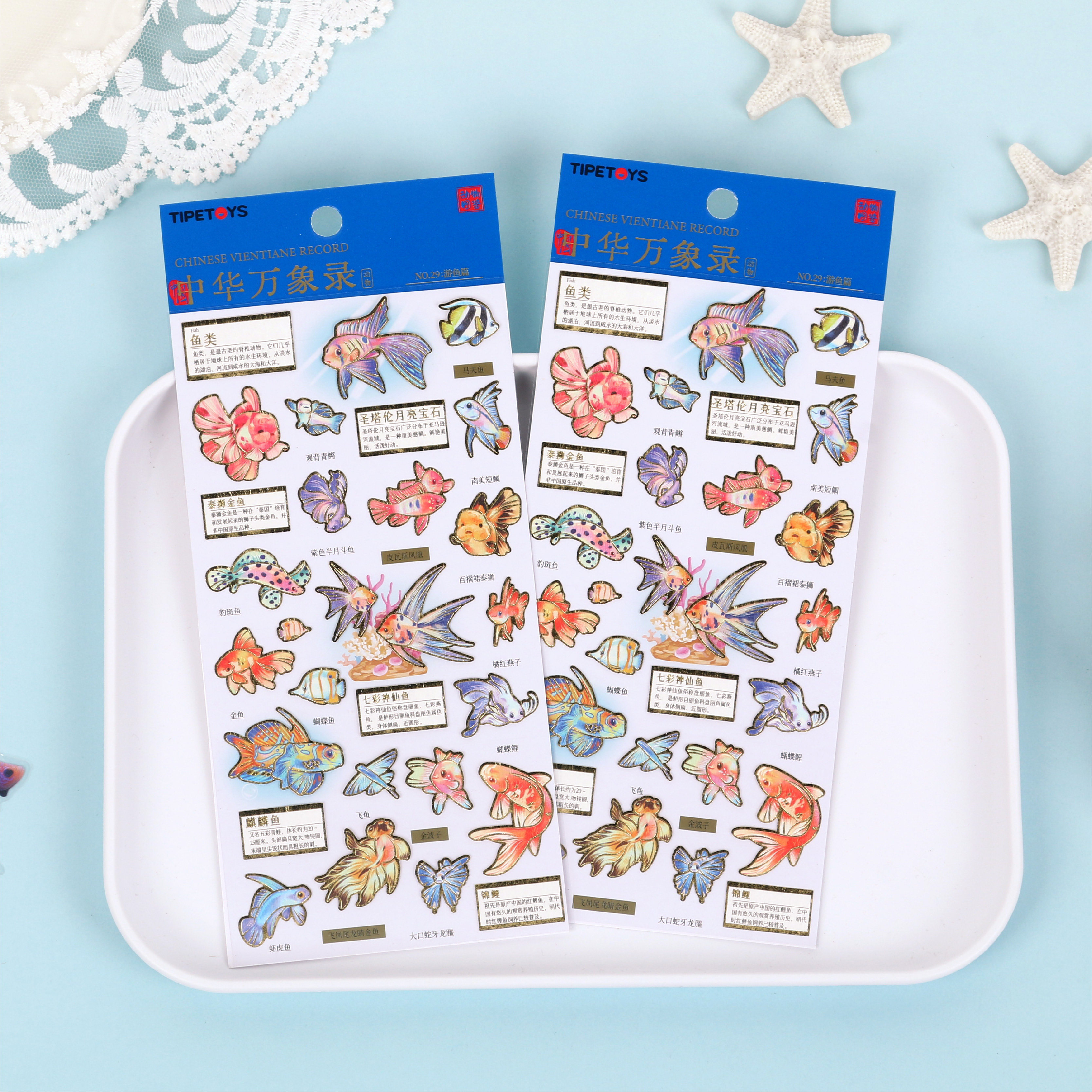 TIPETOYS国风咕卡中华万象录游鱼类贴纸金鱼蝴蝶鲤观赏小鱼卡通图案重工立体手机行李箱手账diy装饰贴画