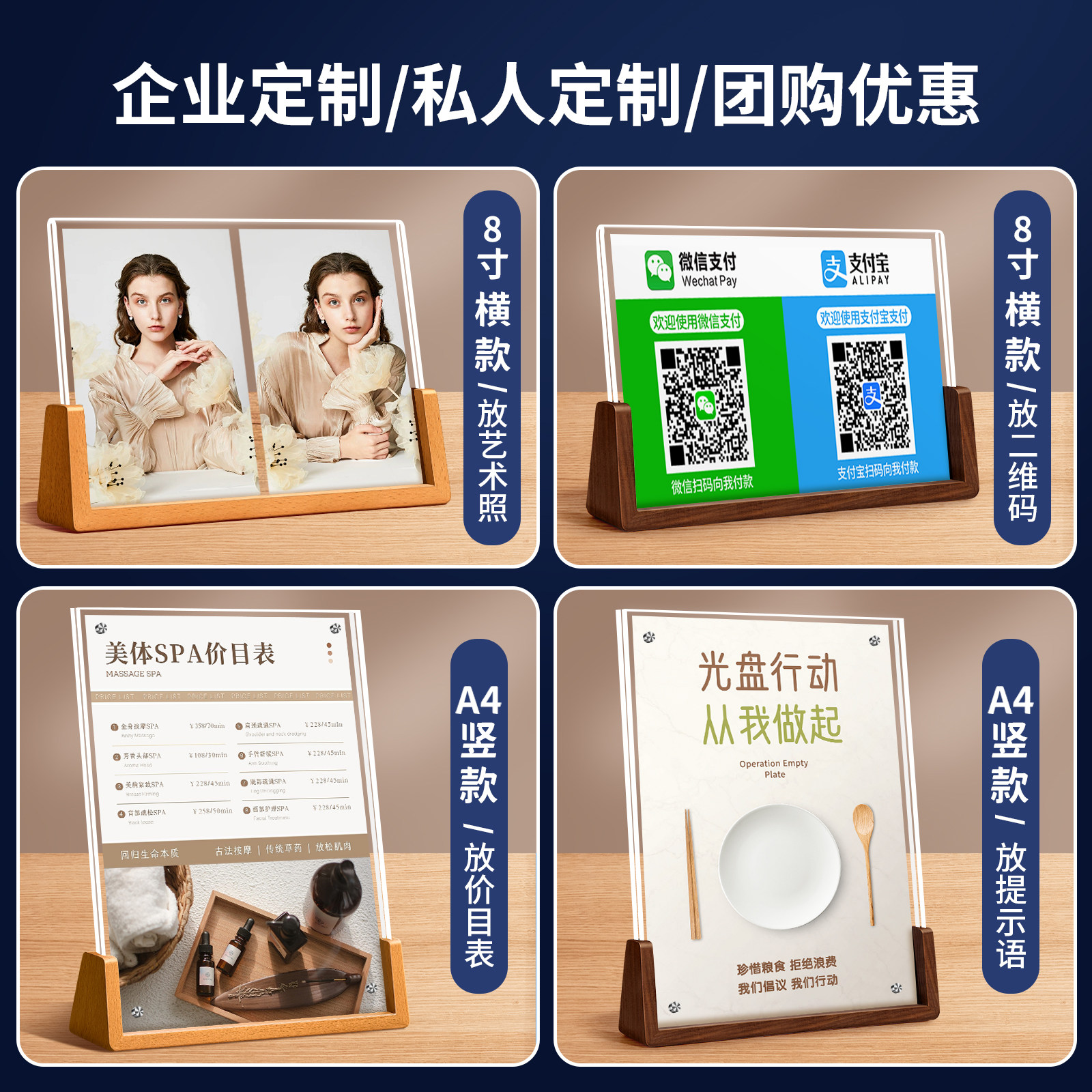 木质亚克力展示牌A4展示架定制台卡桌面水牌立式广告牌价格牌桌牌菜单价目表餐桌台牌立牌实木相框台签摆台A5