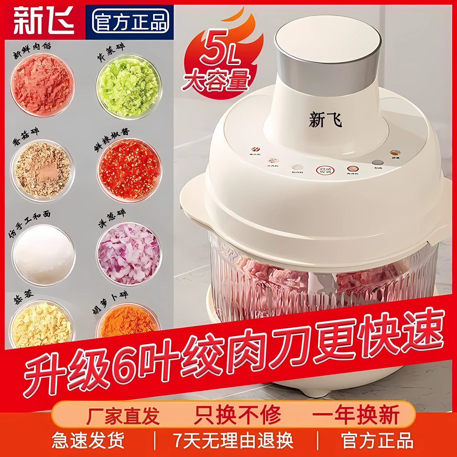 新飞绞肉机和面绞肉多功能一体机家用大容量电动搅拌料理机全自动