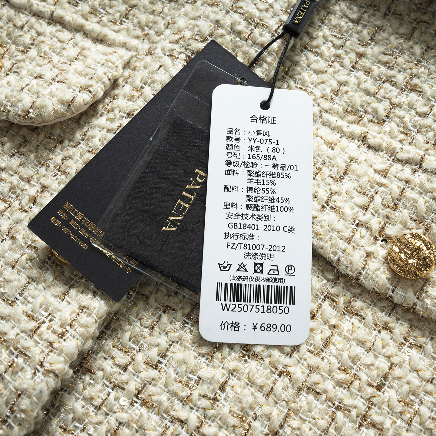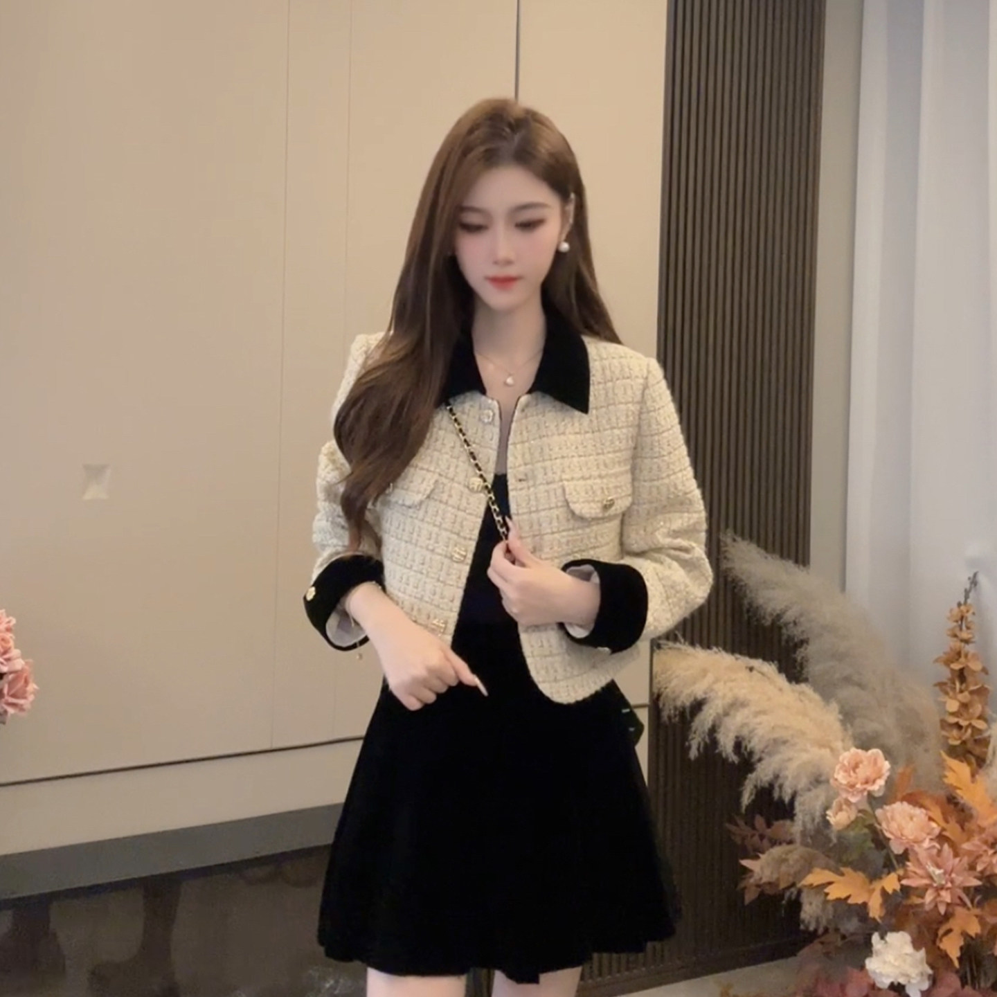 PATENA秋季新款法式粗花呢羊毛上衣减龄气质小香风轻奢高级感外套