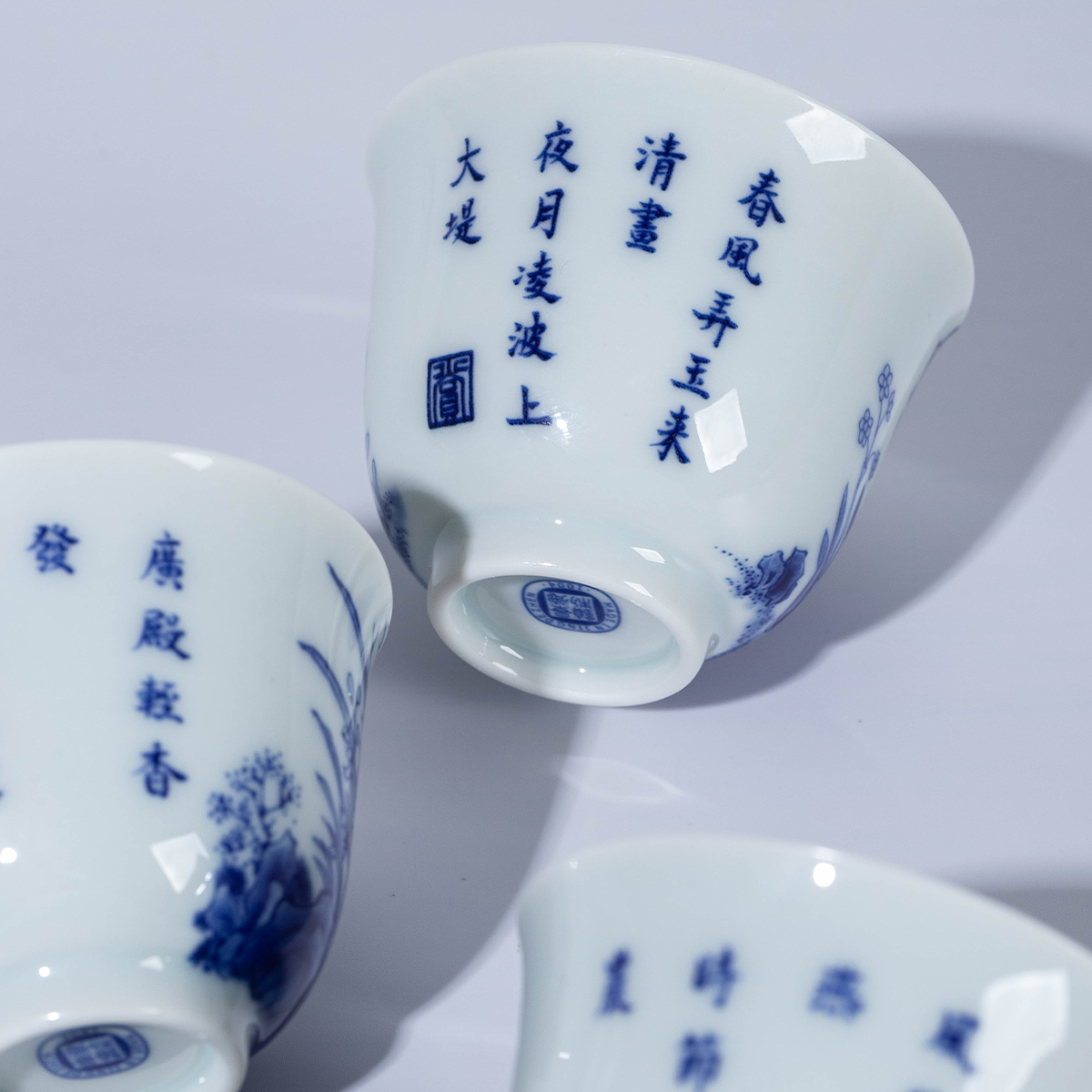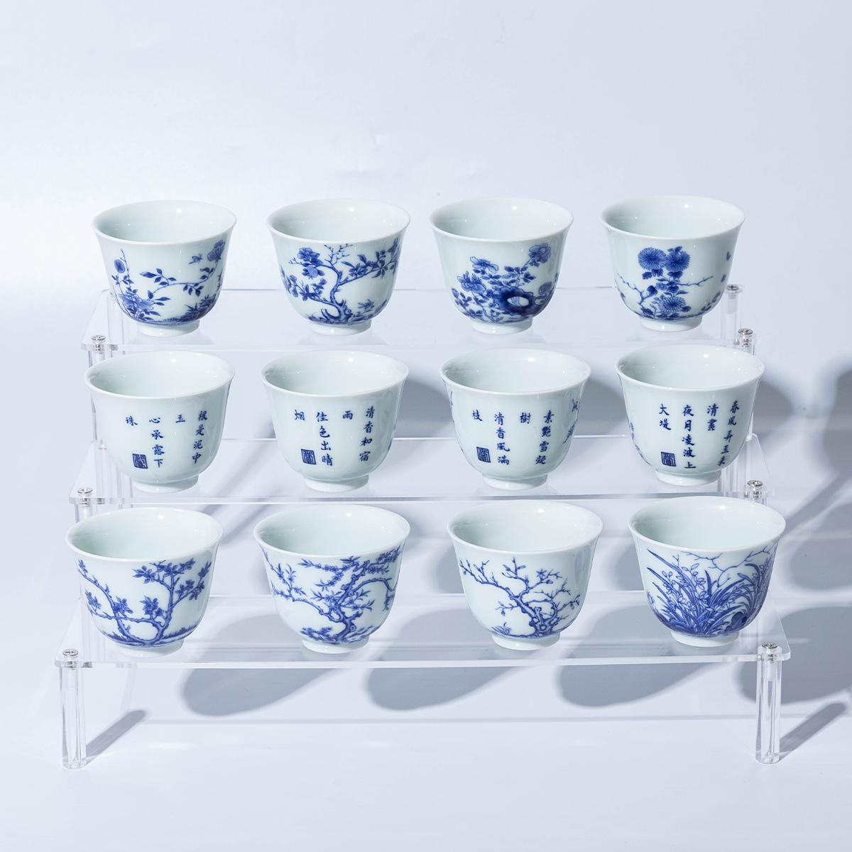 景德镇陶瓷 闲云居十二花神青花功夫茶杯品茗喝茶杯高档茶具送礼