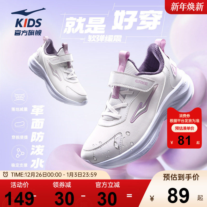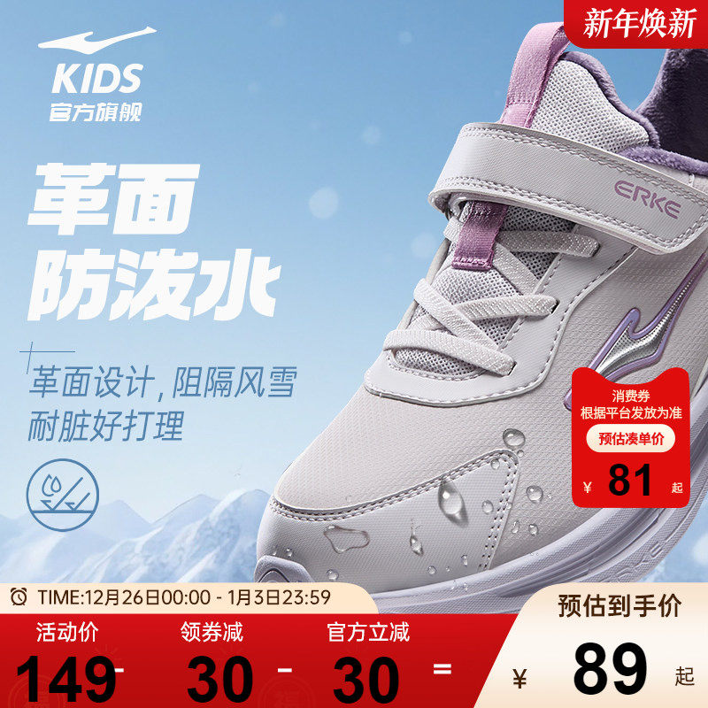 鸣鸥2|鸿星尔克童鞋儿童跑步鞋革面防泼水女童鞋子秋冬加绒运动鞋