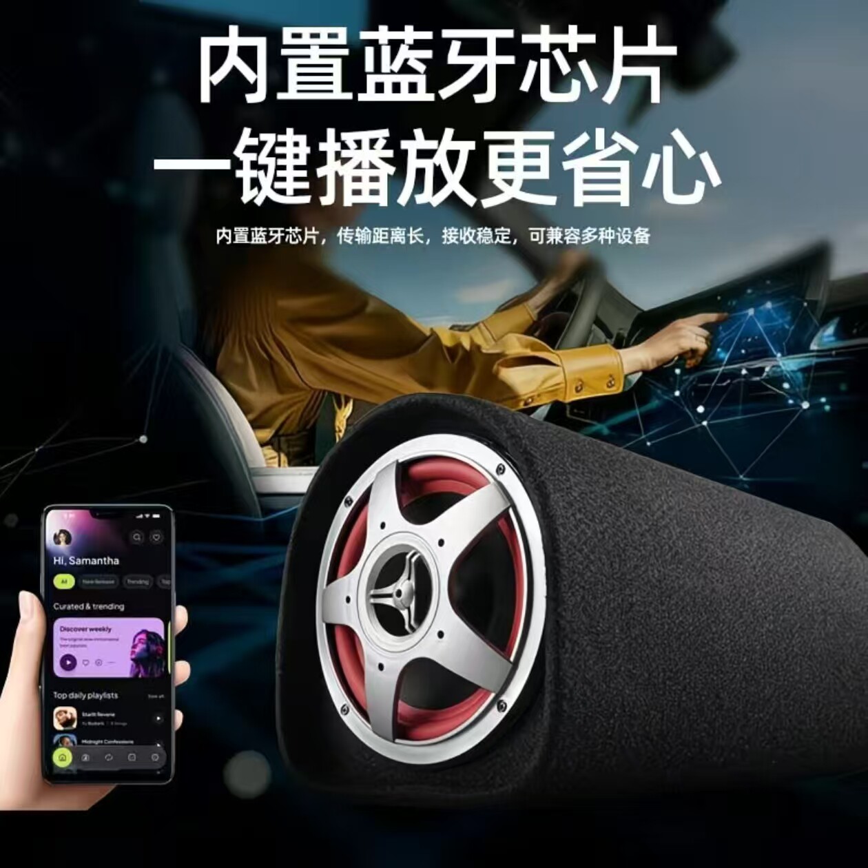 索爱车载音响汽车低音炮超重12v24v大功率蓝牙音箱汽货电动摩托车