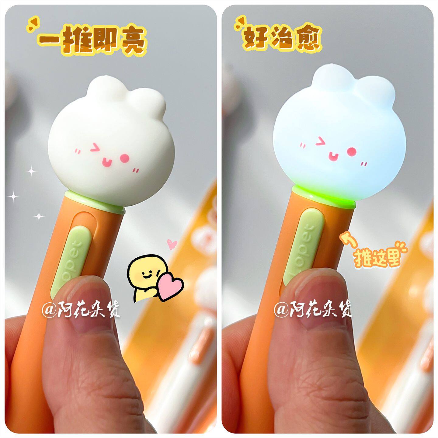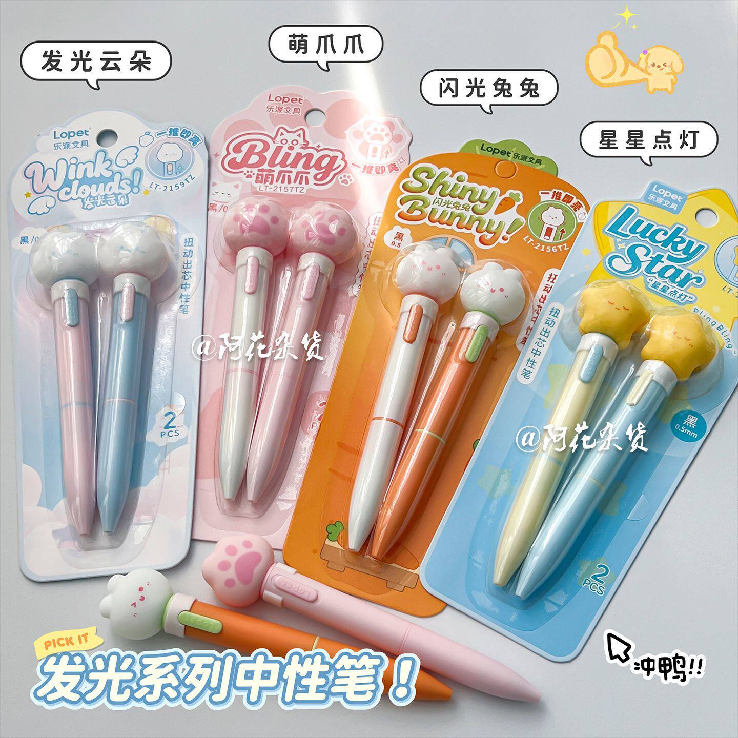 乐派闪光兔兔旋转中性笔发光笔高颜值可爱风学生创意黑笔刷题笔