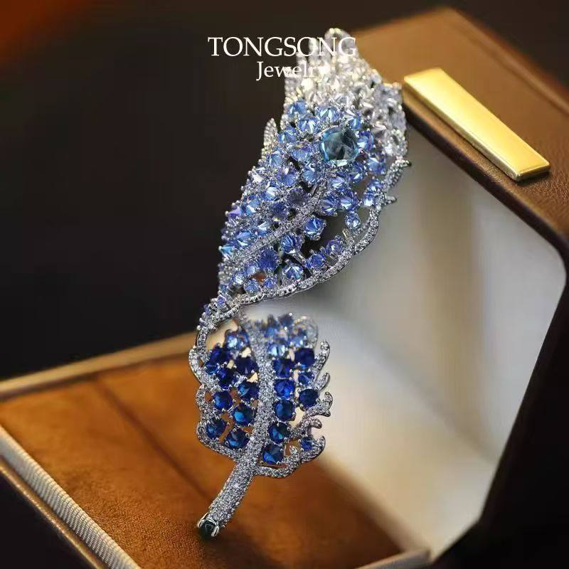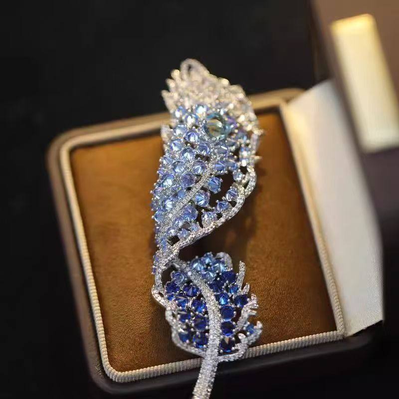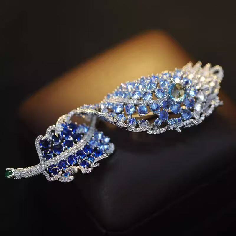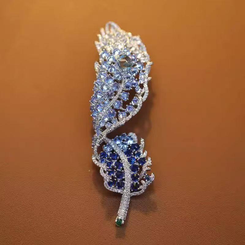 高端货奢华微镶闪钻羽毛胸针新品重工气质大衣女西装配饰晚宴胸花