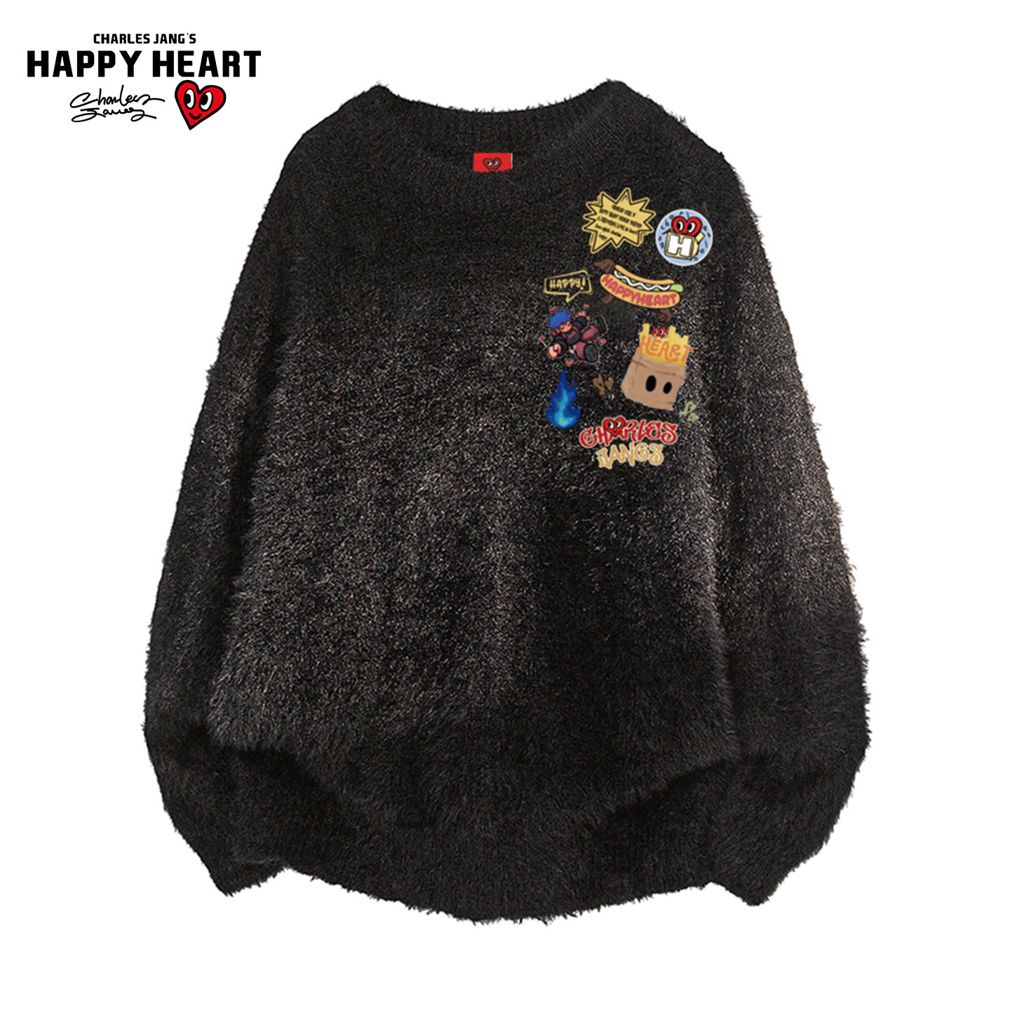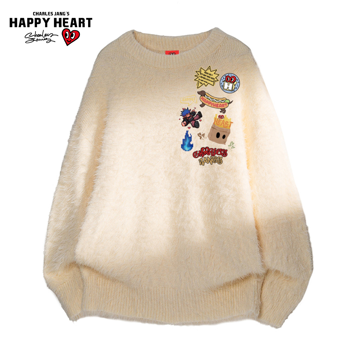 查尔斯桃心美式图案印花毛衣男圆领冬季新款潮牌情侣海马毛针织衫