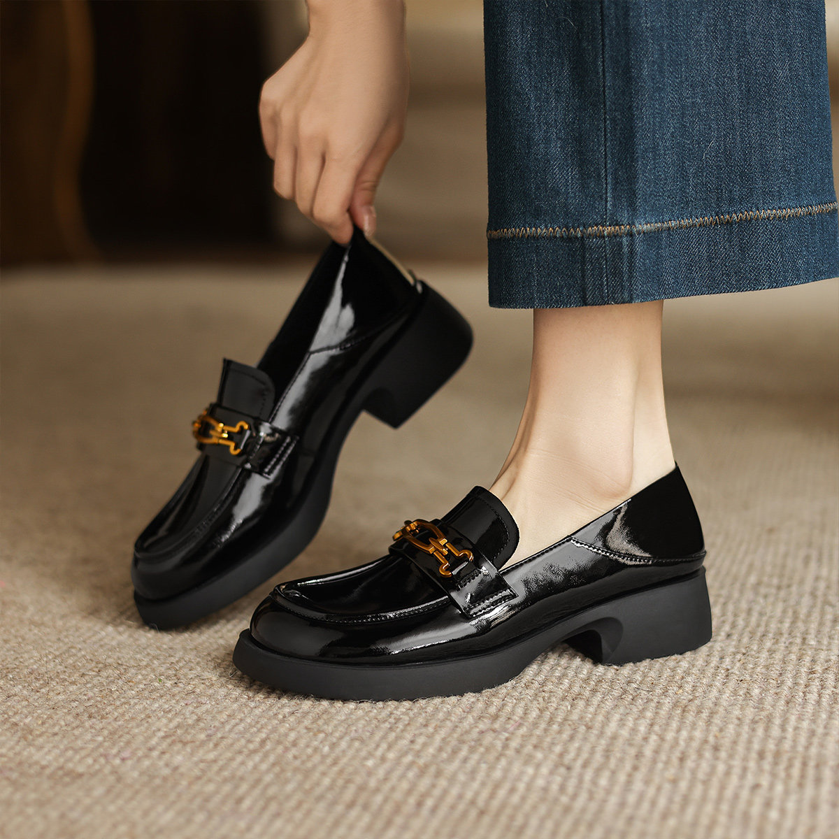 升级版~张元英同款miu风金币英伦学院粗跟高跟真皮乐福鞋女小皮鞋
