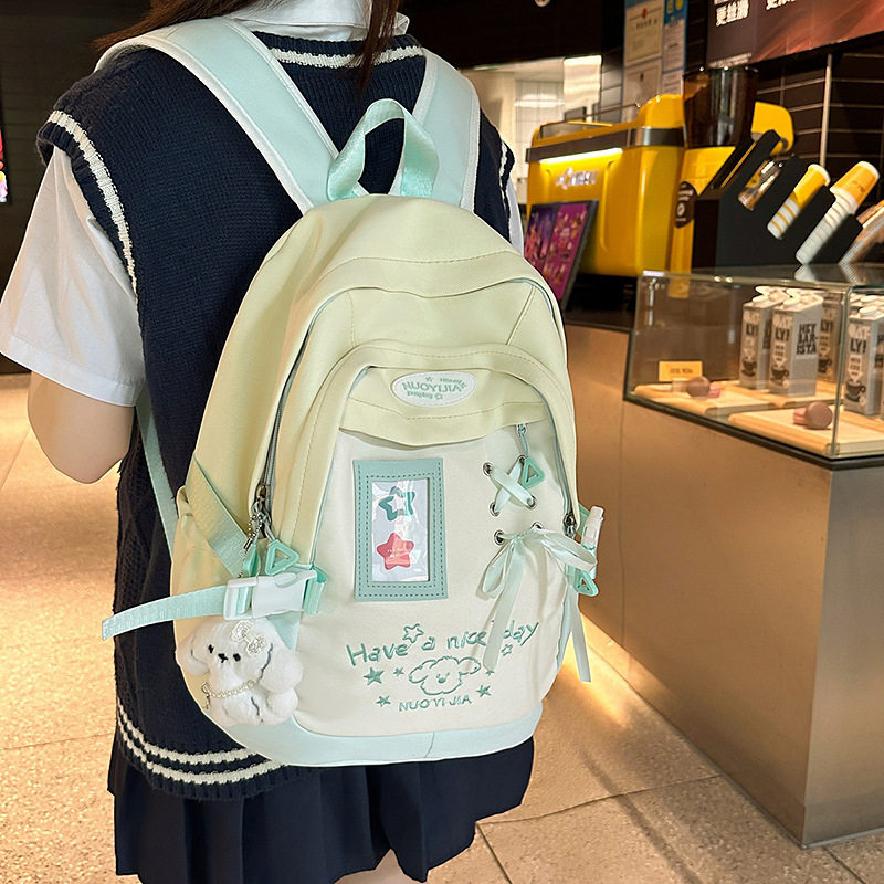 稻草人新款高颜值清新甜美背包撞色拼接轻便旅行大容量双肩包