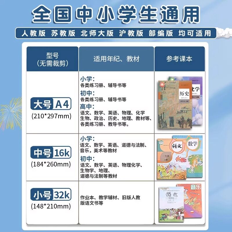 包书皮自粘透明磨砂书皮纸小学生专用一年级二三年级下册中号16k课本2026新款书本保护套书套包书膜全套贴纸
