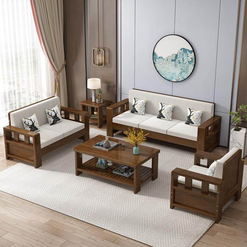 新中式实木沙发组合简约客厅冬夏两用纯木质家具经济小户型沙发