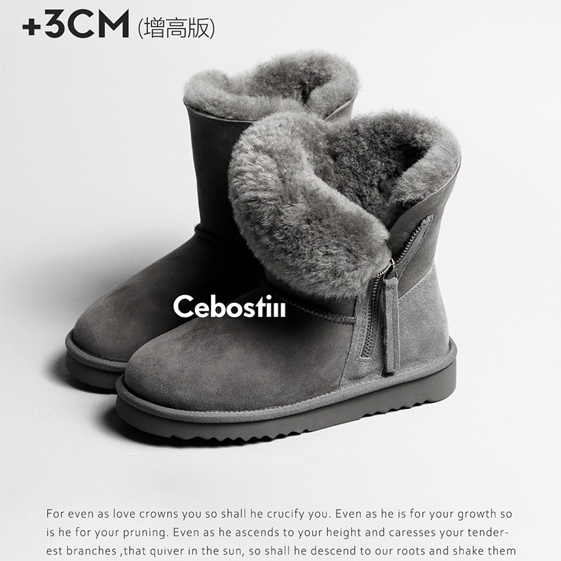 miu家厚底雪地靴女冬季真皮短靴羊毛侧拉链增高厚底加绒毛毛棉鞋