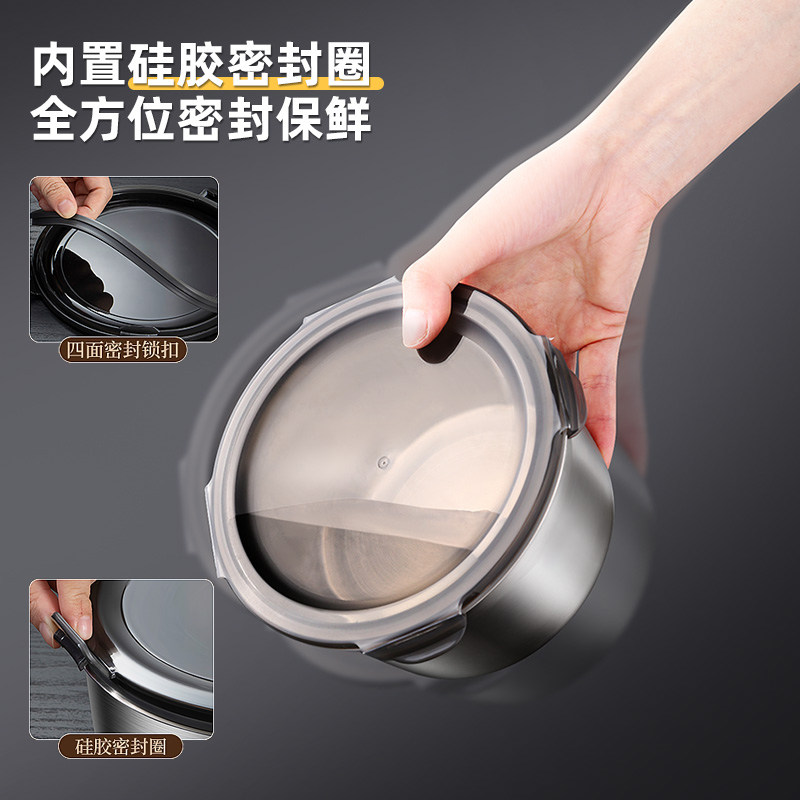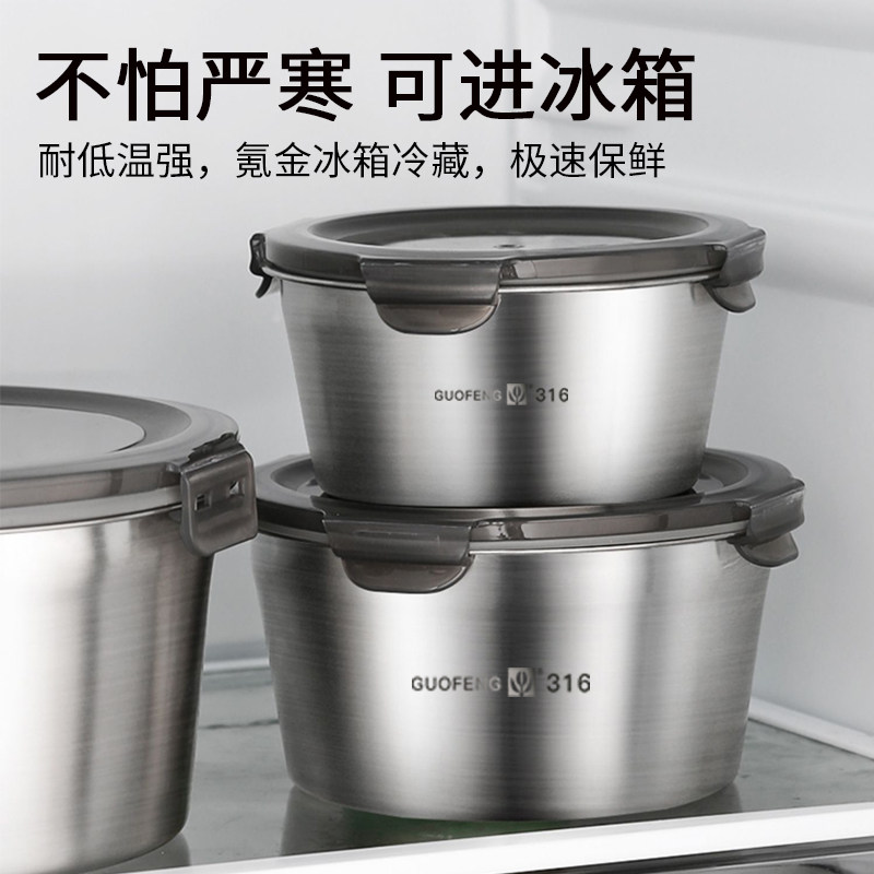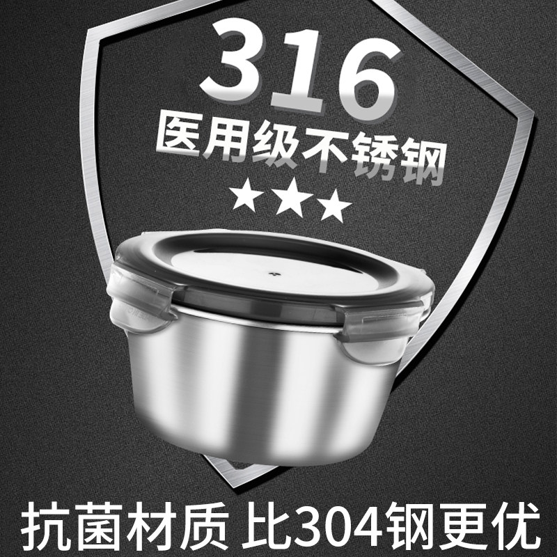 圆形保鲜盒316不锈钢饭盒食品级冰箱密封盒水果盒便当盒汤碗带盖