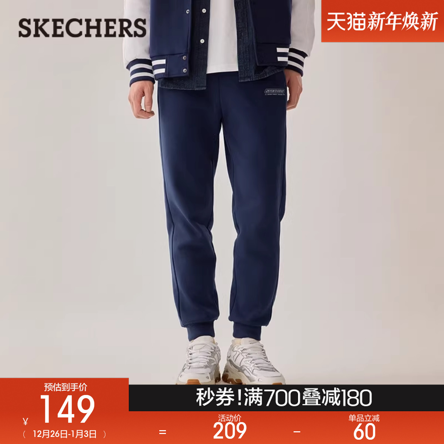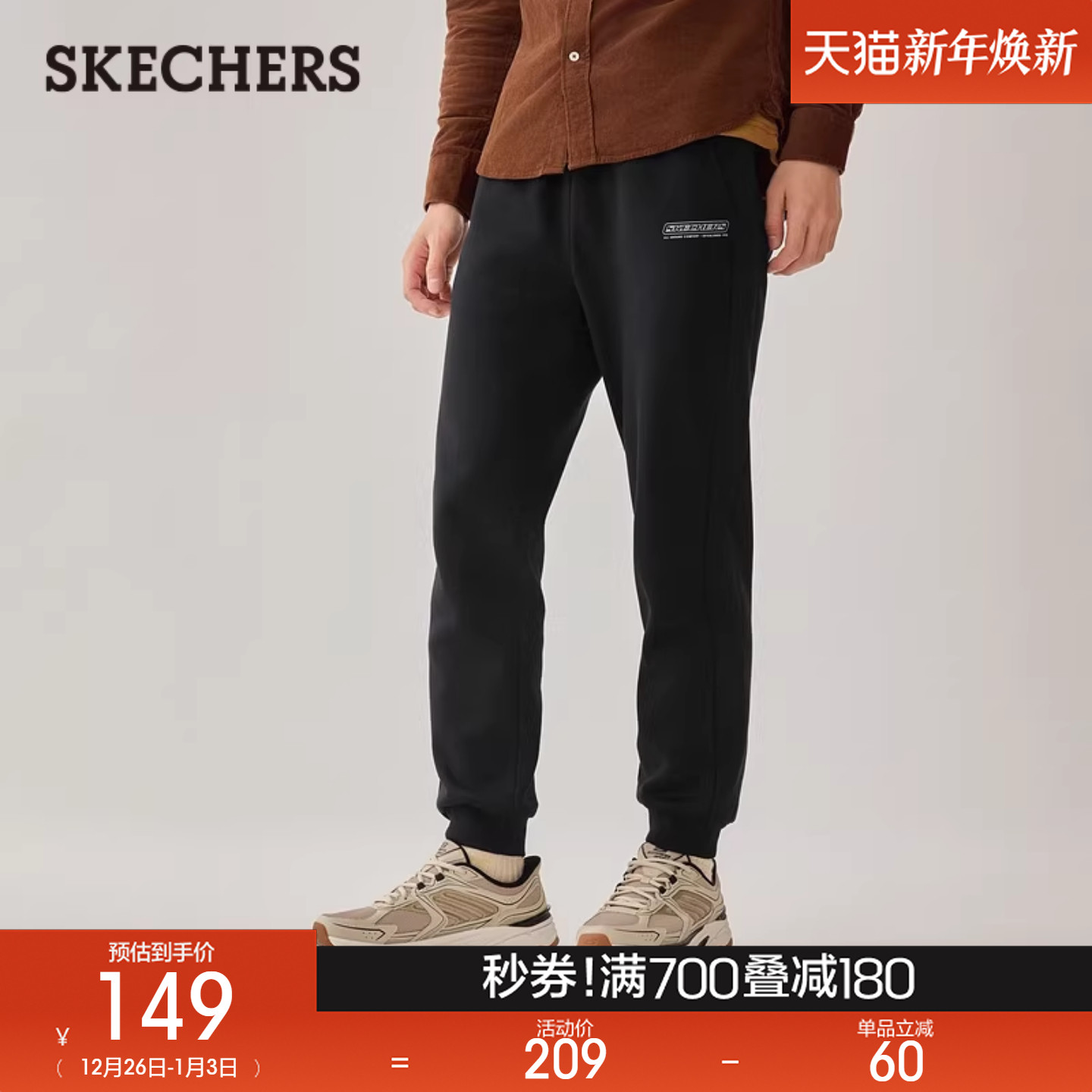 斯凯奇2025年冬季新款男子时尚舒适宽松针织长裤百搭黑色束脚裤