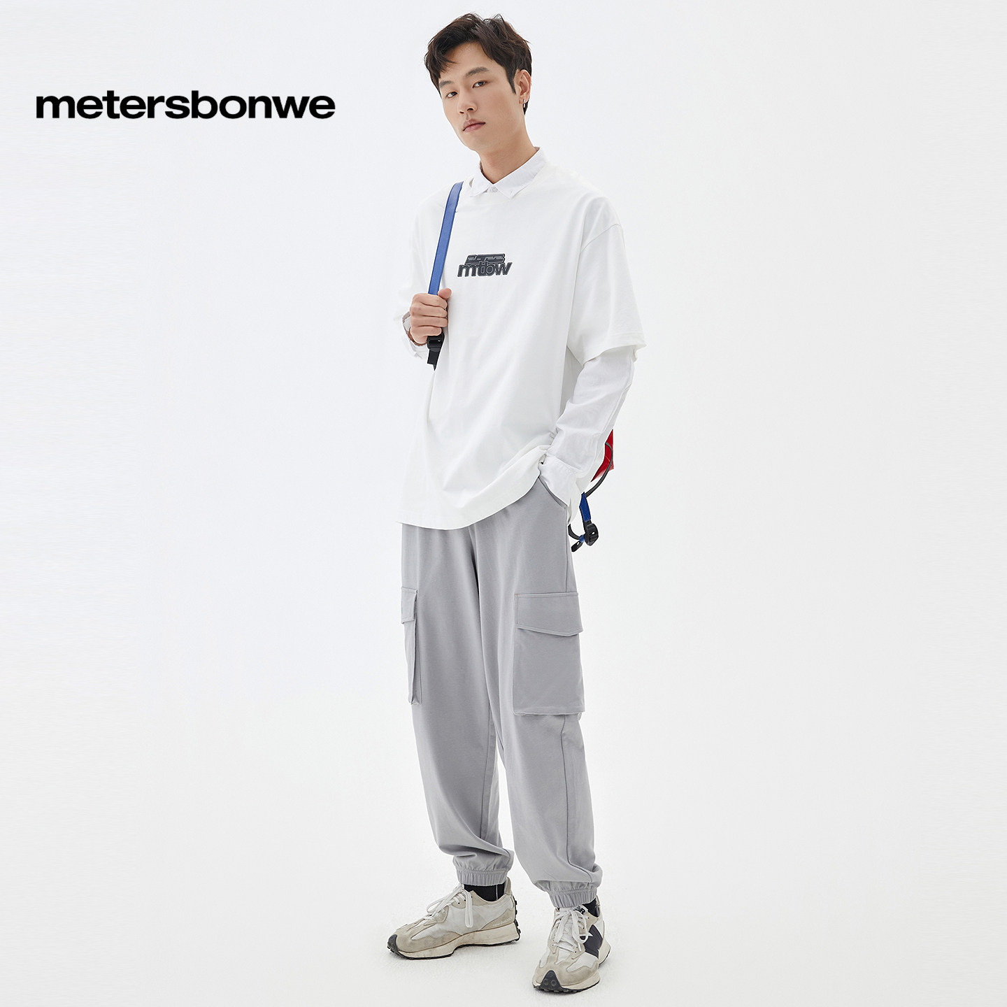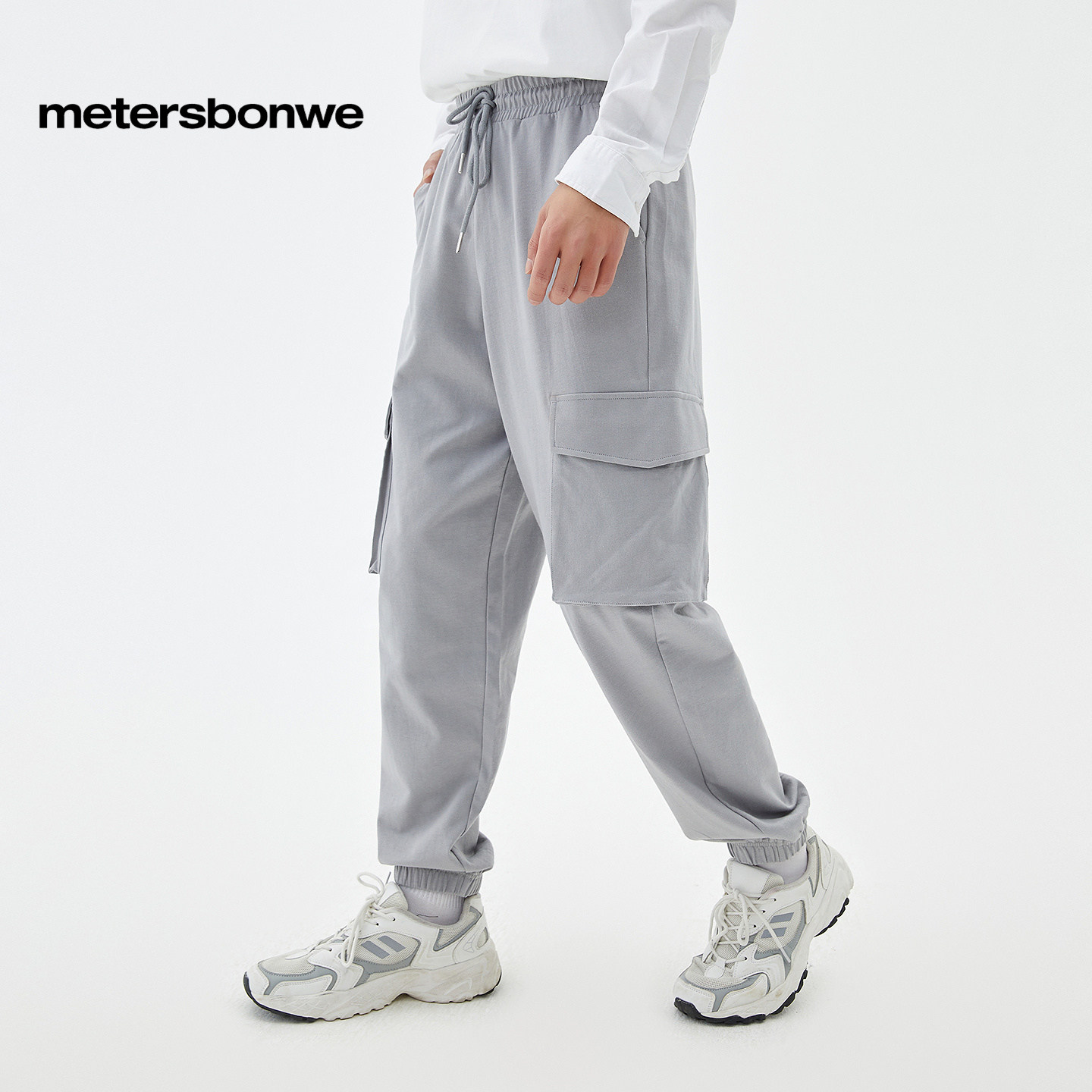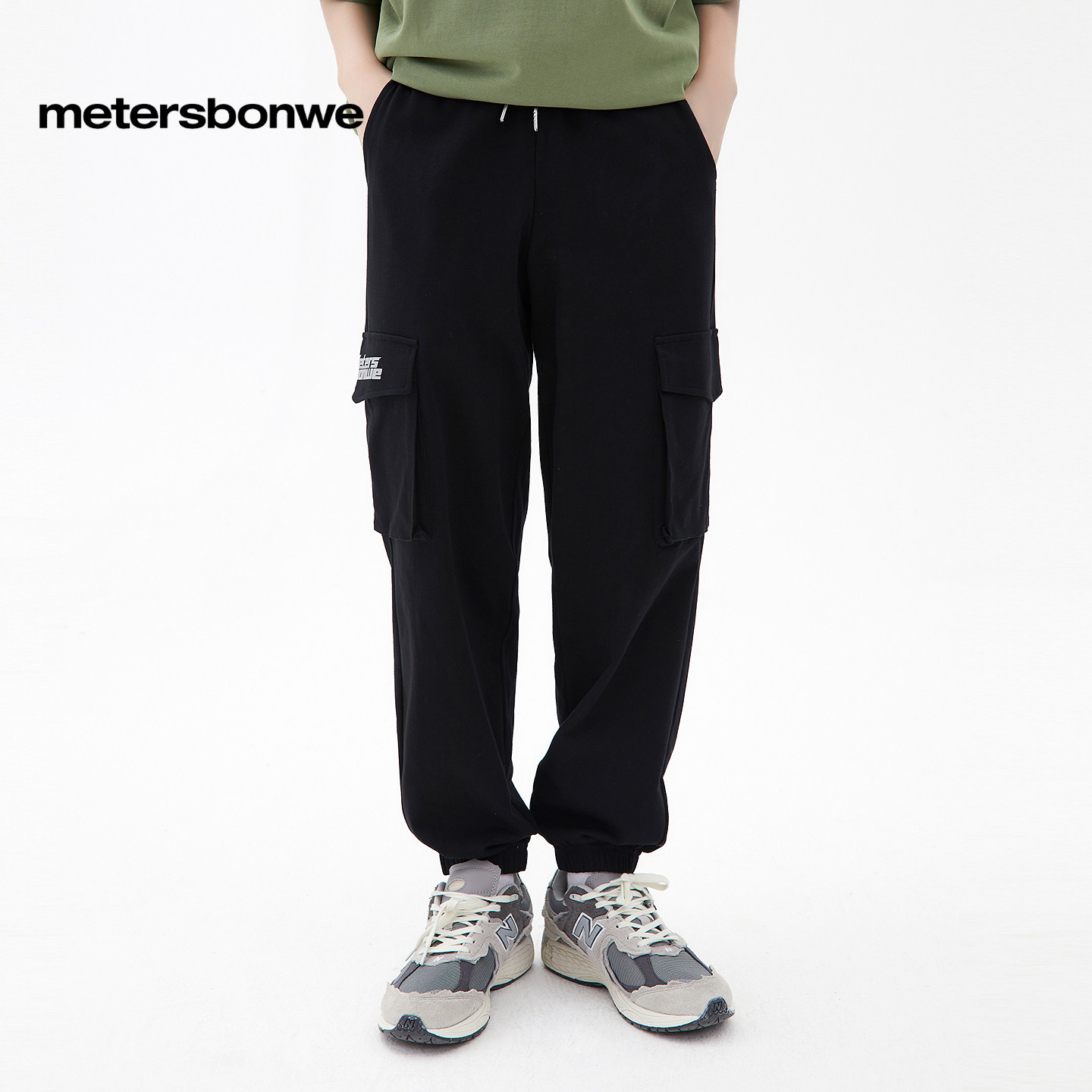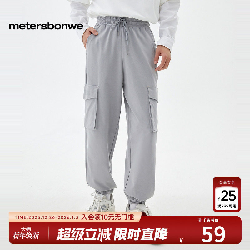美特斯邦威男士时尚工装针织长裤春季舒适百搭印花点缀休闲裤下装