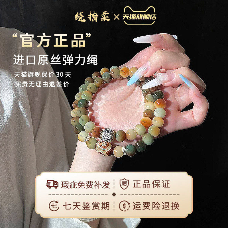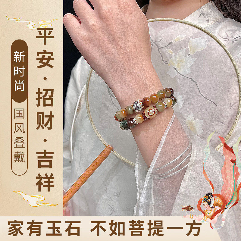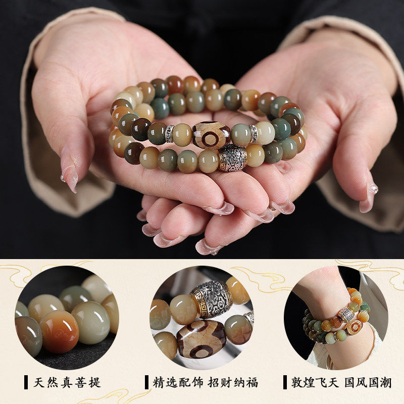古风敦煌菩提根手串文玩白玉菩提子双圈盘玩佛珠手持手链男