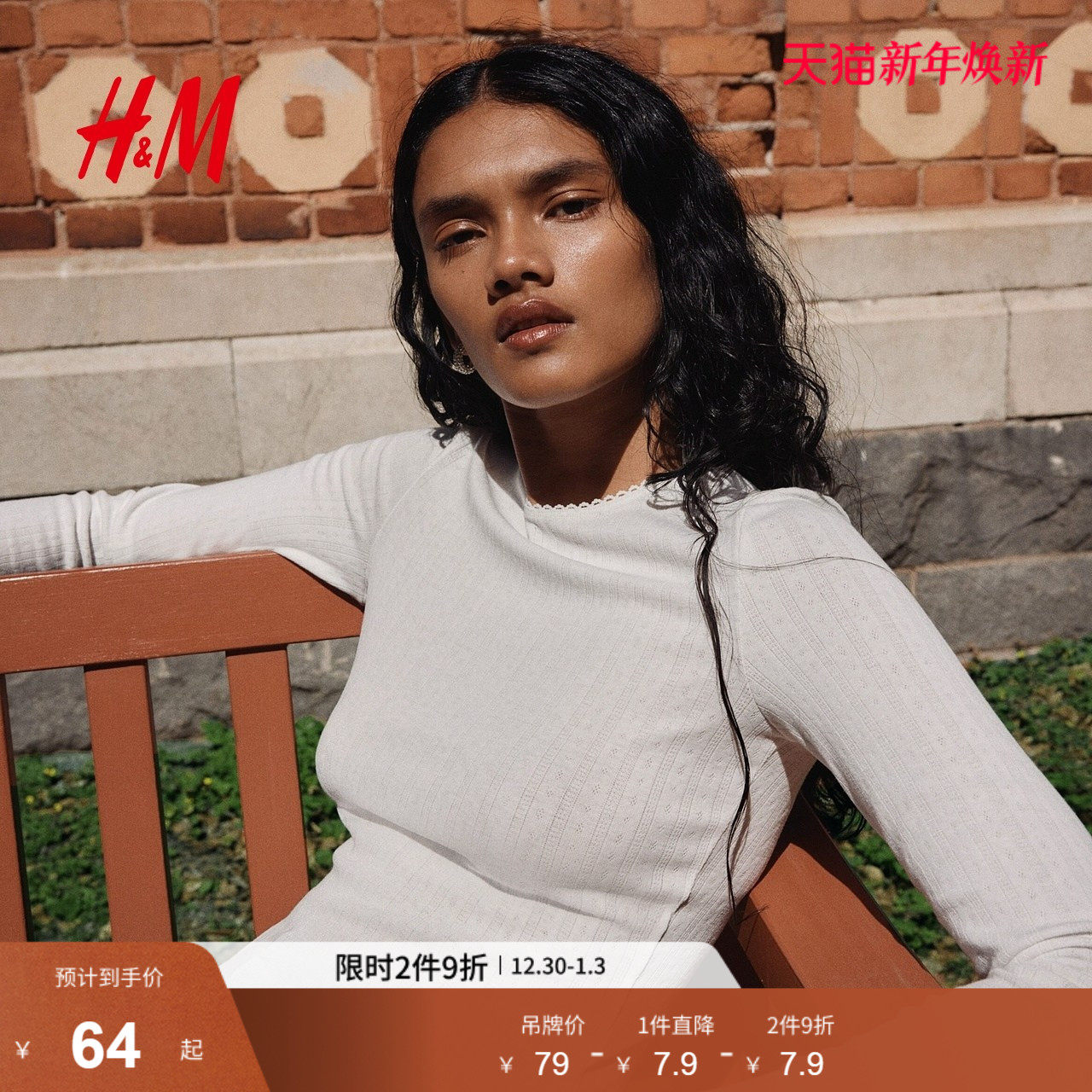 HM女装T恤冬季圆领简约时尚气质上衣针织套衫1296047