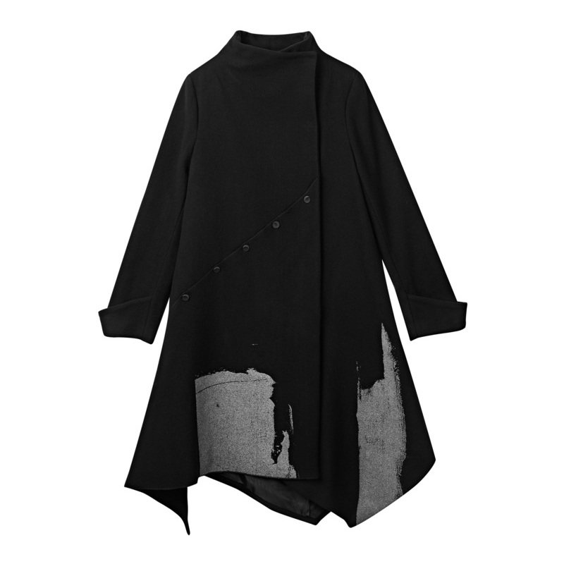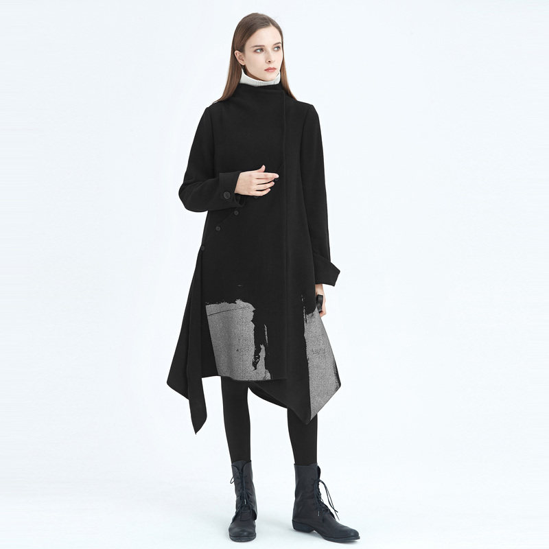 sdeer圣迪奥女装立领撞色胶印不规则拼接毛呢大衣S20481837